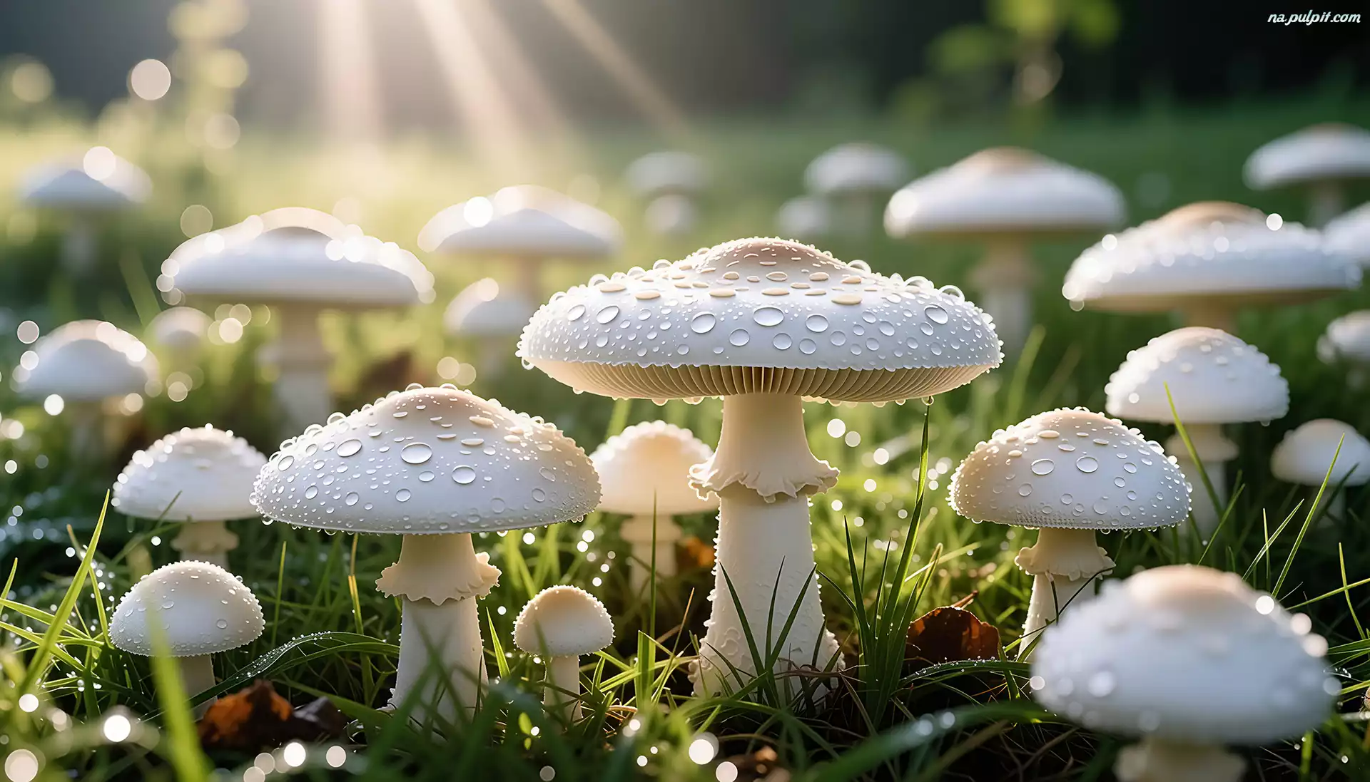 Białe, Grzyby, Muchomory, Grafika AI Na Pulpit