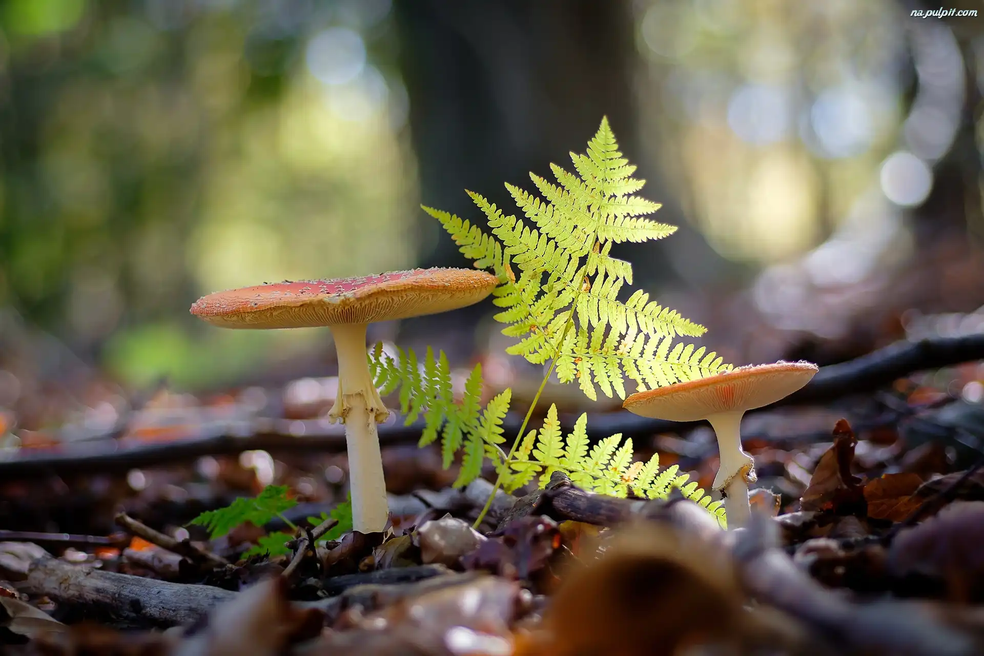 Paproć, Grzyby, Muchomory Na Pulpit