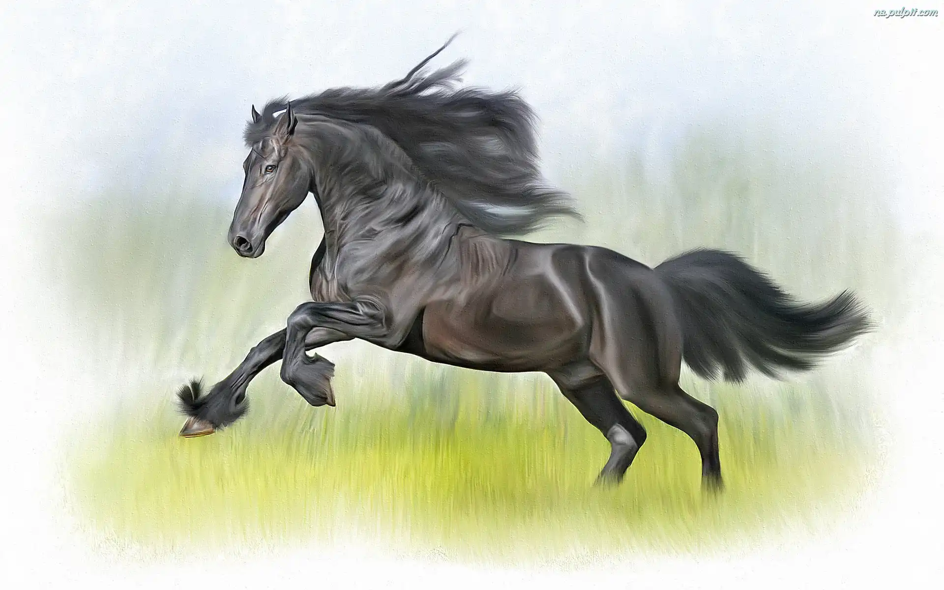 Grzywa, Koń, Czarny, Grafika, Rozwiana Na Pulpit