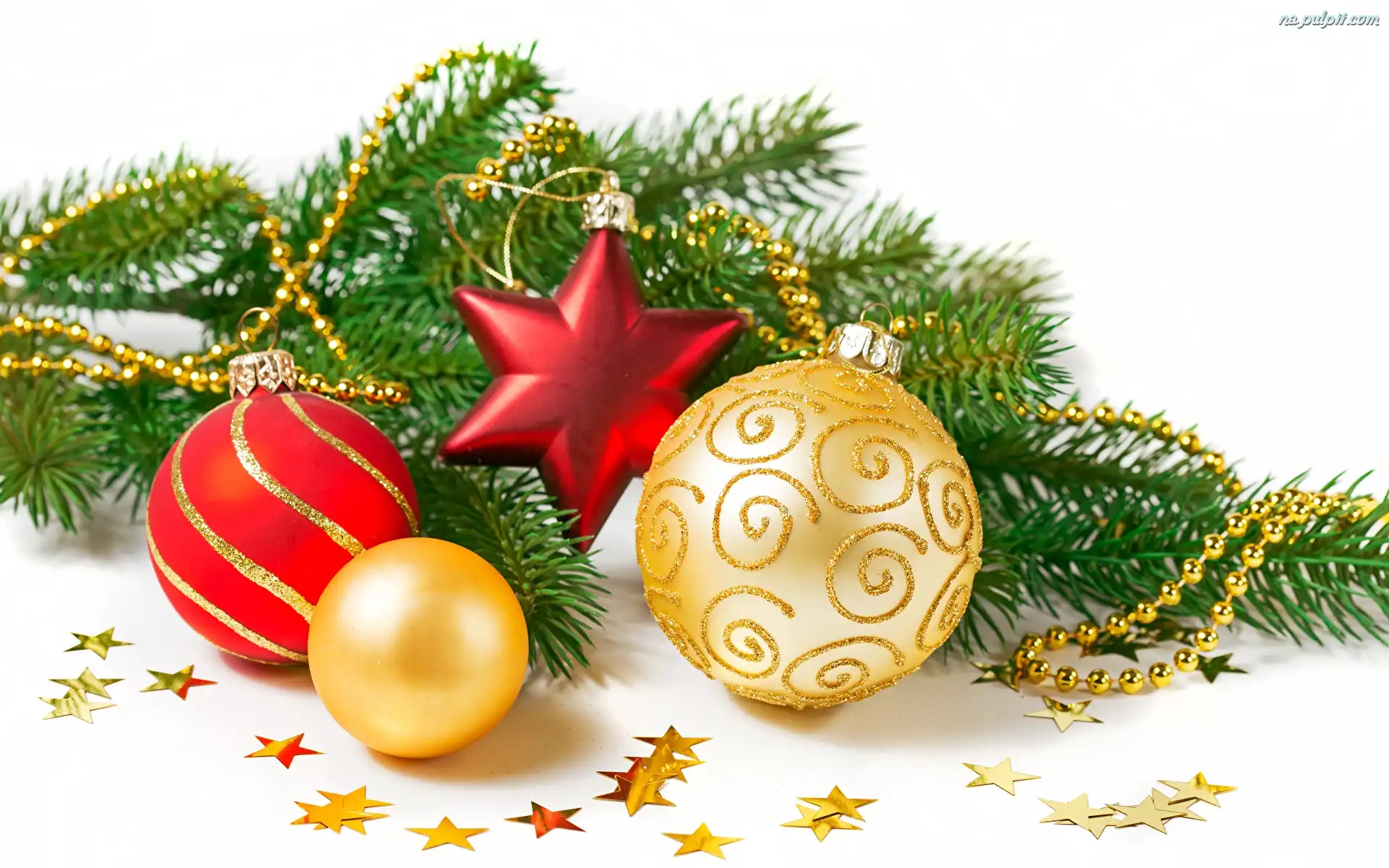 Gwiazdki, Świerkowe, Bombki, Boże Narodzenie, Gałązki
