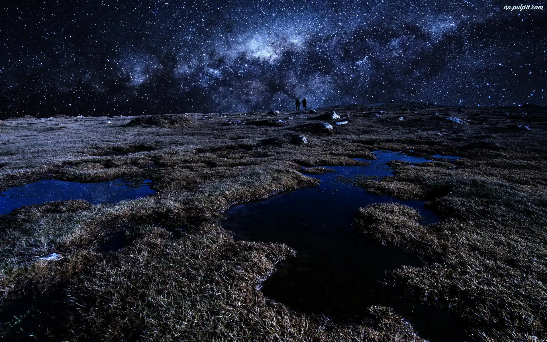 Gwiazdy, Woda, Łąka, Noc Na Pulpit