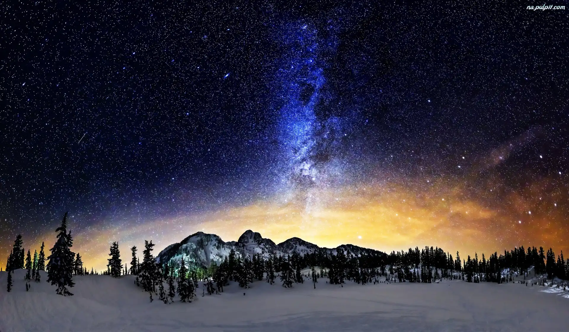 Gwiazdy, Góry, Zima, Droga Mleczna Na Pulpit