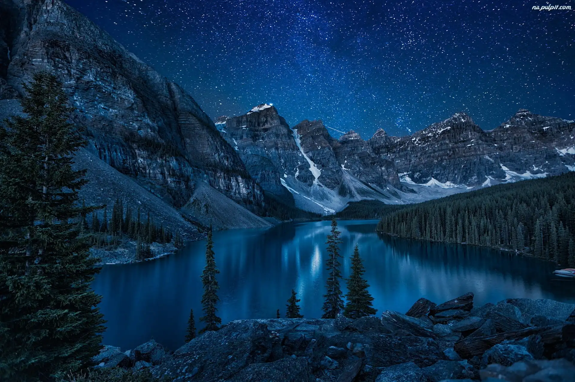 Gwiazdy, Jezioro, Góry, Niebo Na Pulpit