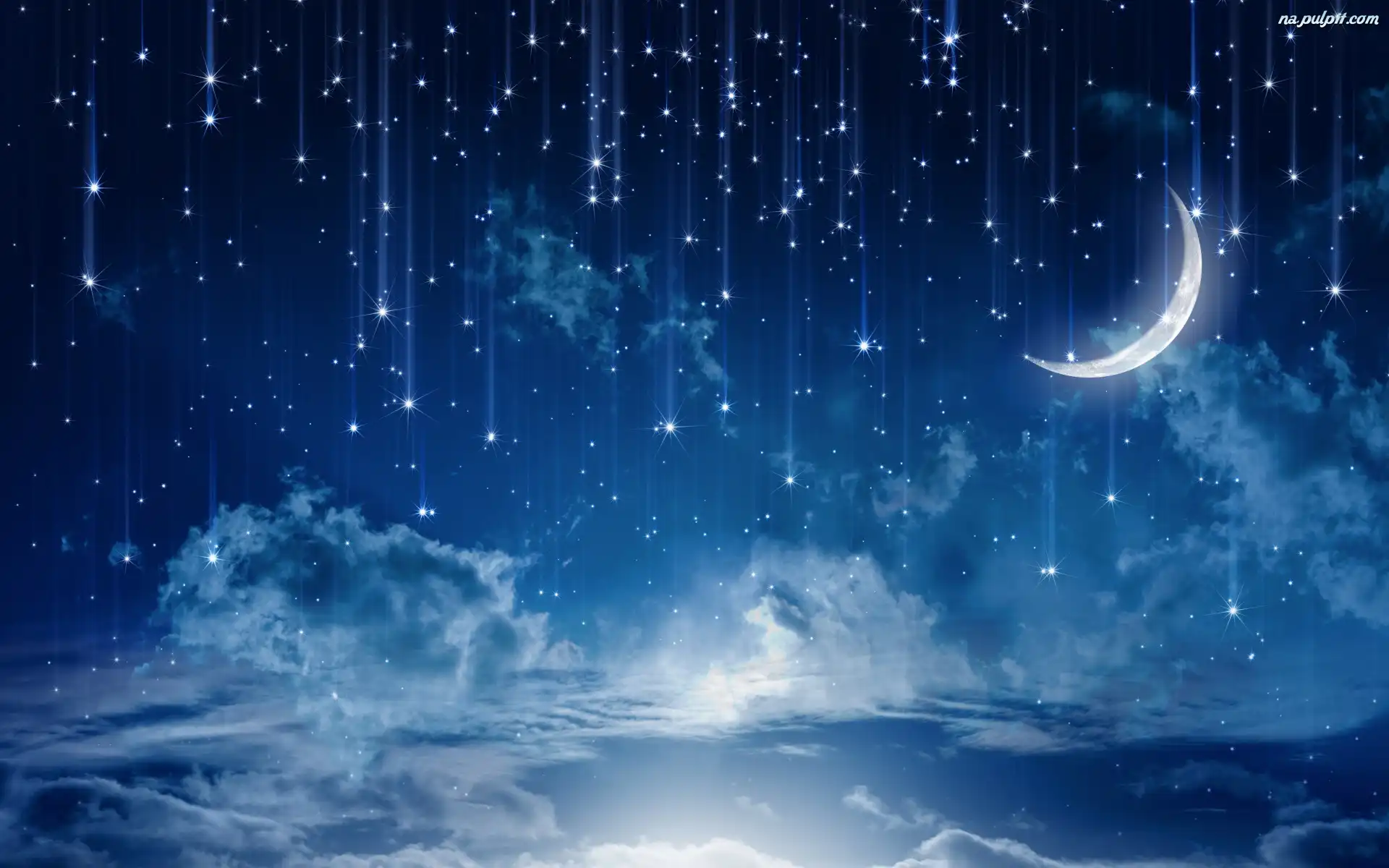 Gwiazdy, Chmury, Noc, Grafika, Księżyc Na Pulpit