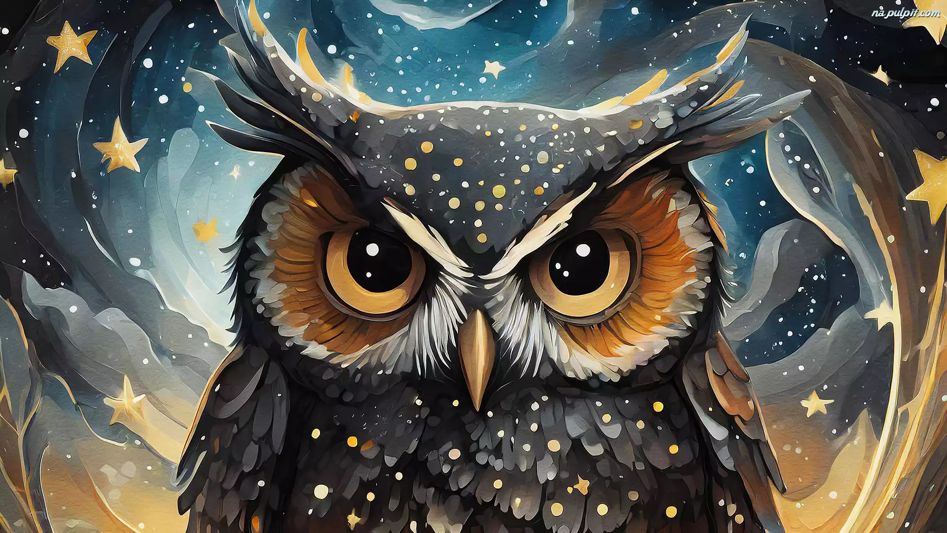 Grafika, Ptak, Sowa, Gwiazdy Na Pulpit