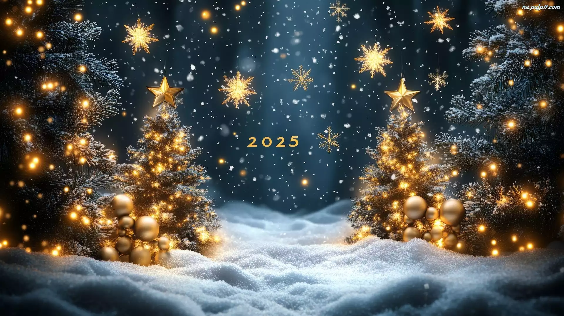 Grafika, 2025, Śnieg, Boże Narodzenie, Choinki, Dekoracje, Gwiazdy Na Pulpit