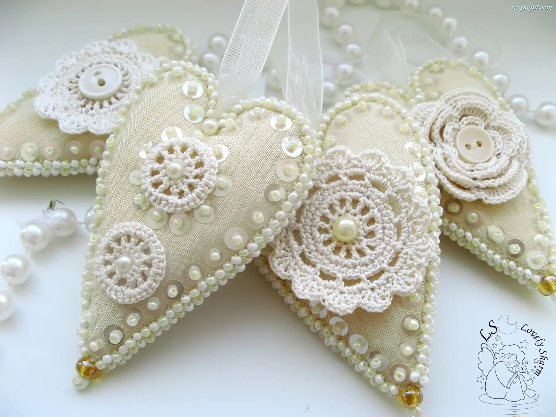 Dekoracja, Haftowane, Serduszka Na Pulpit
