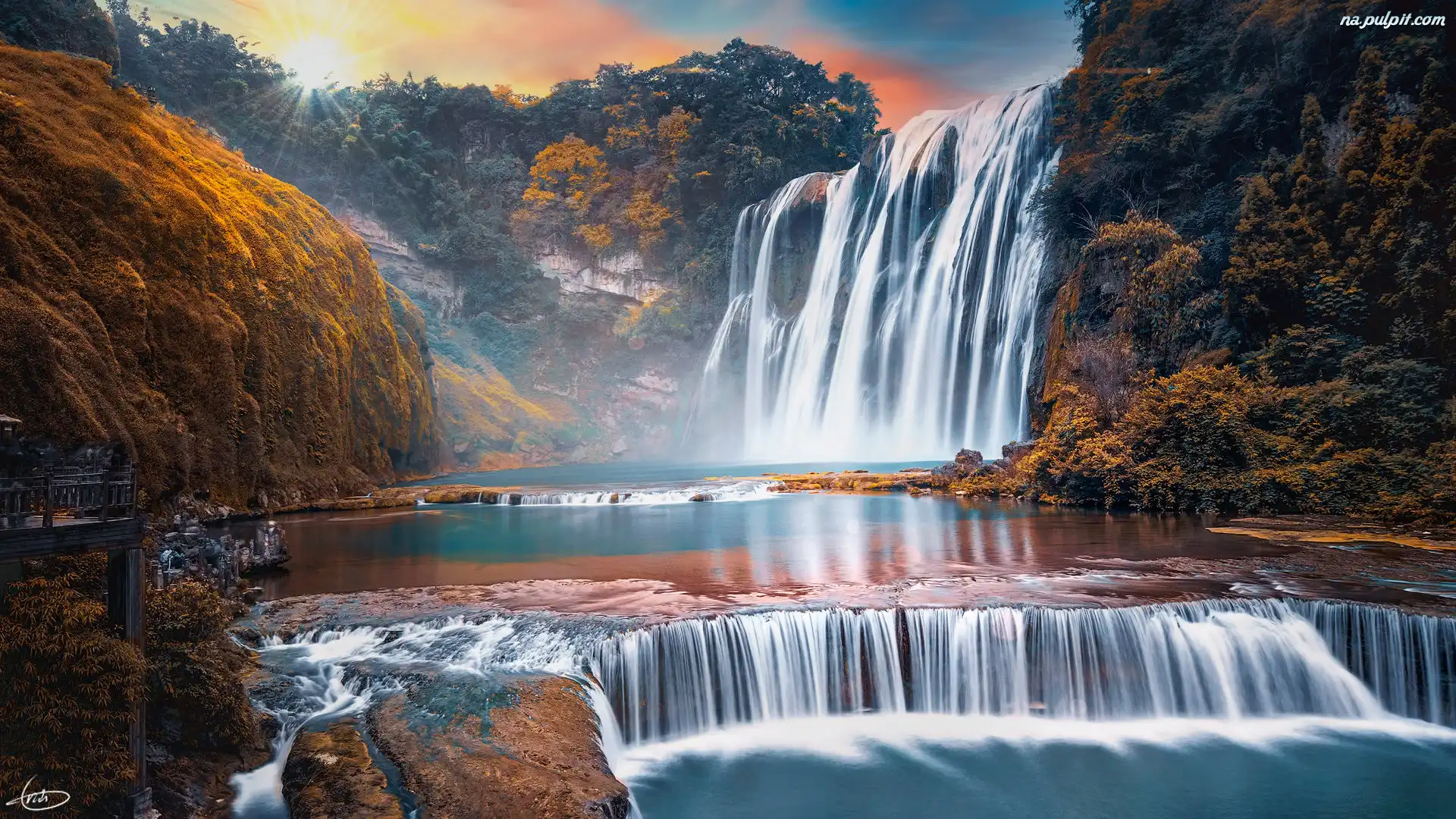 Chiny, Rzeka Haishui He, Prowincja Guizhou, Skały, Góry, Wodospad Huangguoshu, Drzewa Na Pulpit