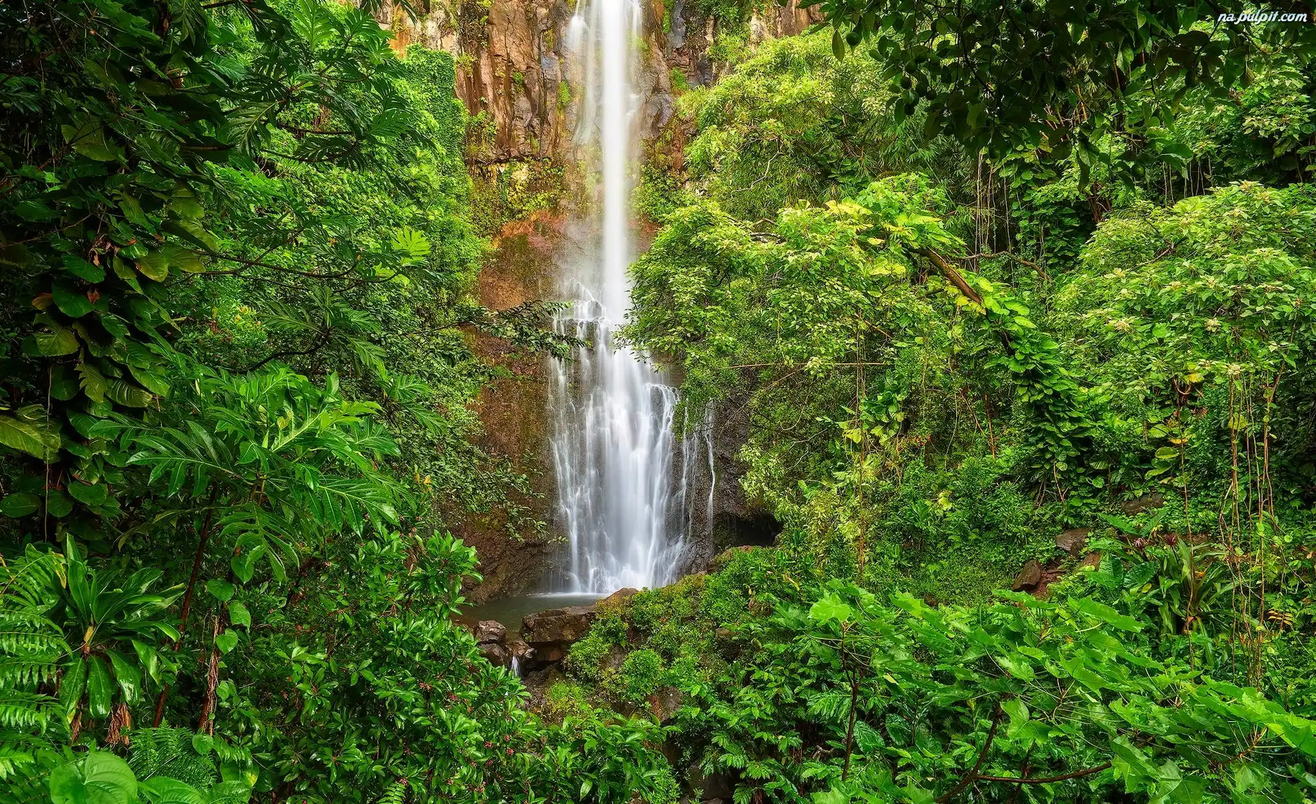 Park Narodowy Haleakala, Drzewa, Roślinność, Wyspa Maui, Wodospad Waimoku Falls, Hawaje Na Pulpit |