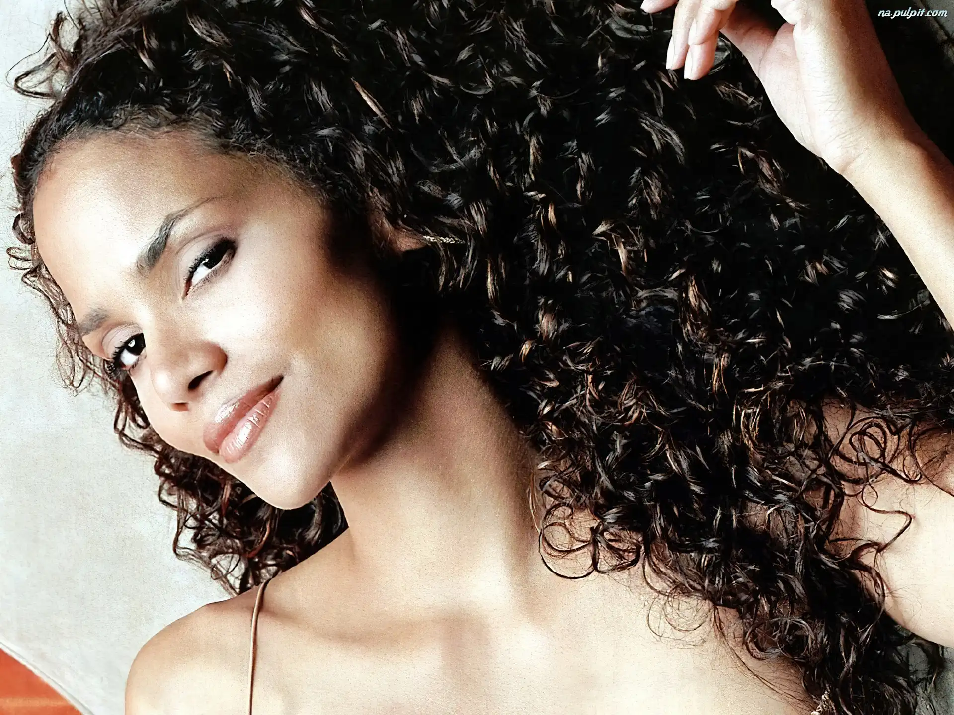 Halle Berry, włosy, kręcone, spojrzenie