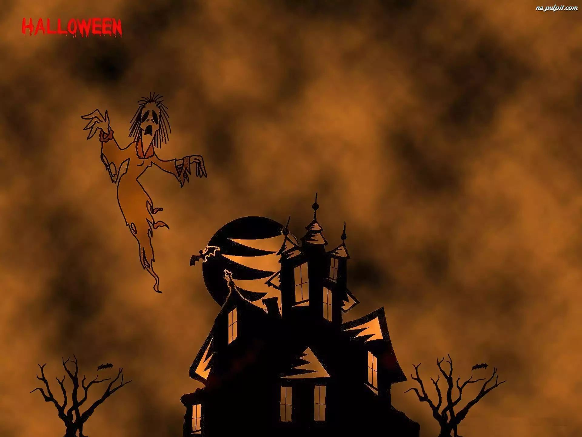 dom, Halloween, drzewa Na Pulpit
