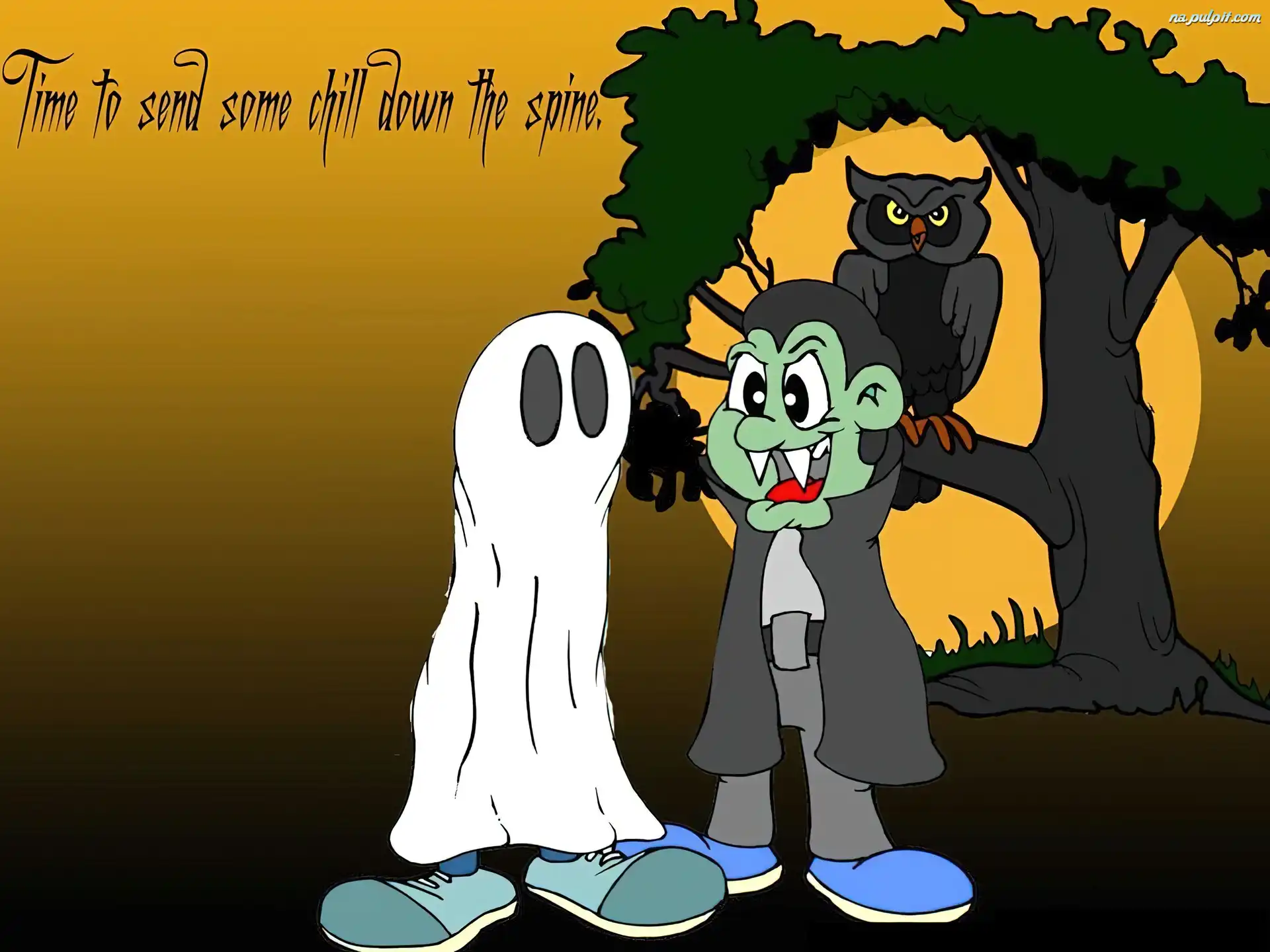 drzewo, Halloween, sowa Na Pulpit