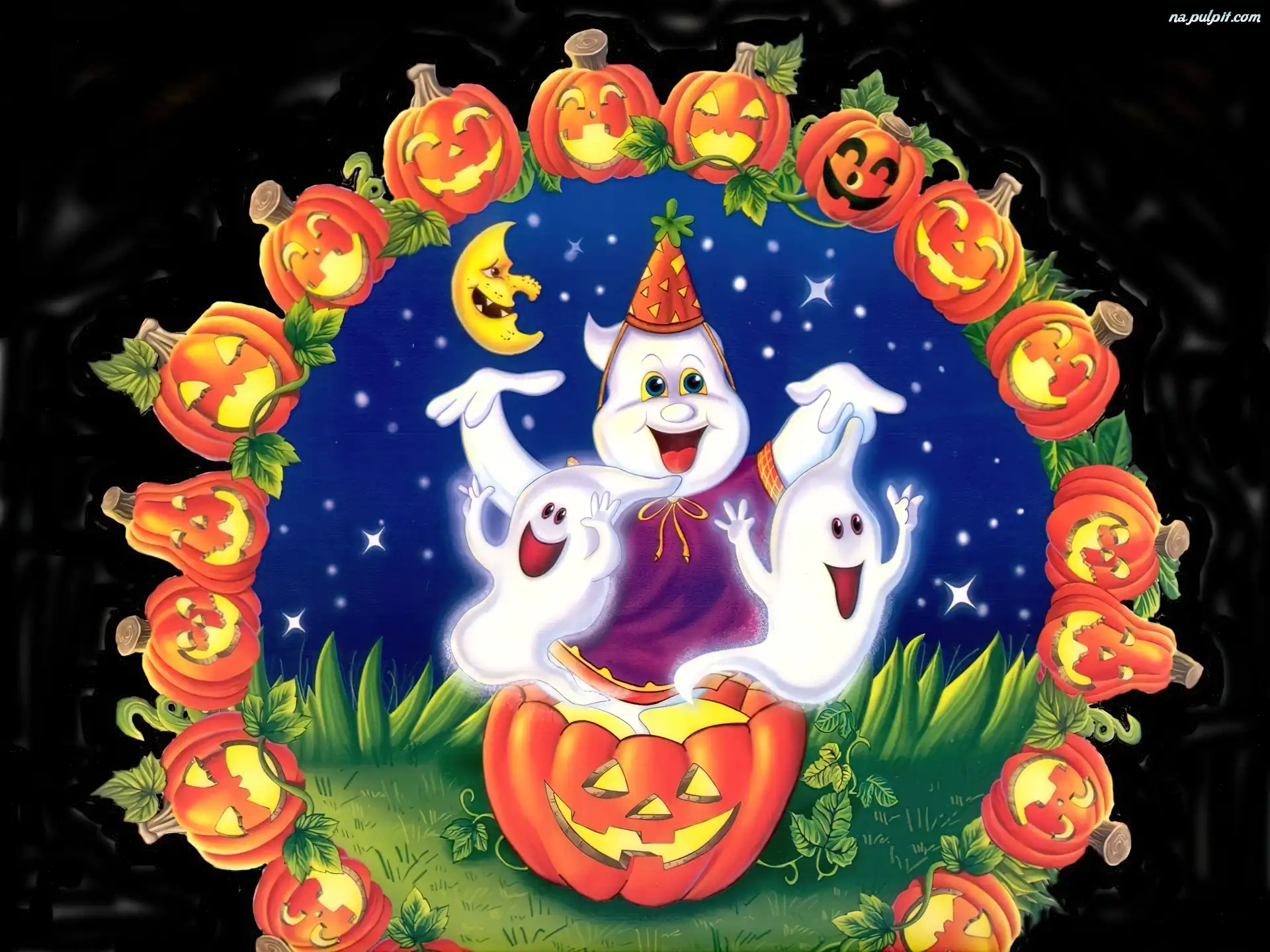 duszki, Halloween, dynie Na Pulpit