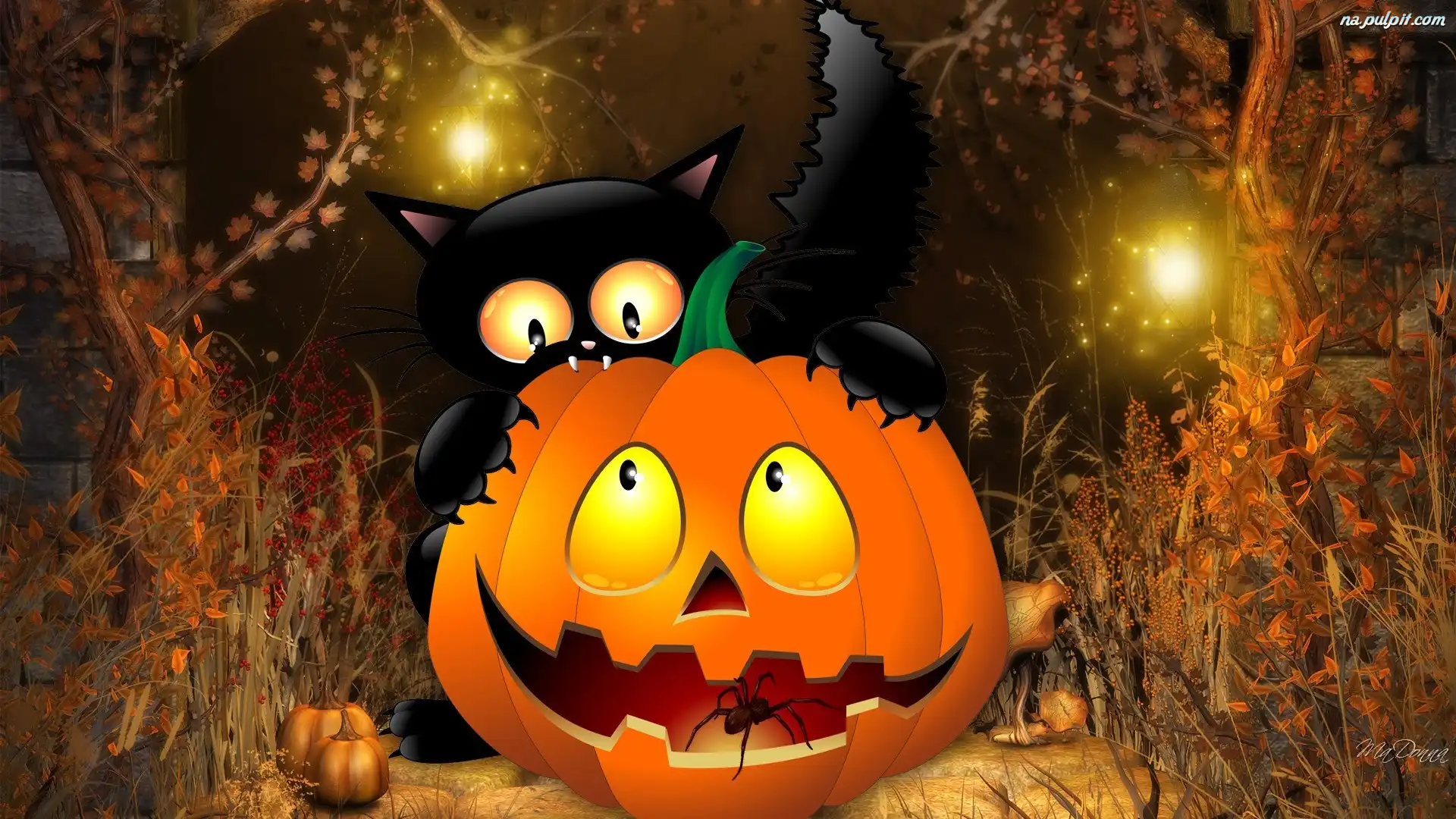 Halloween, PajÄ…k, Dynia, Kot Na Pulpit