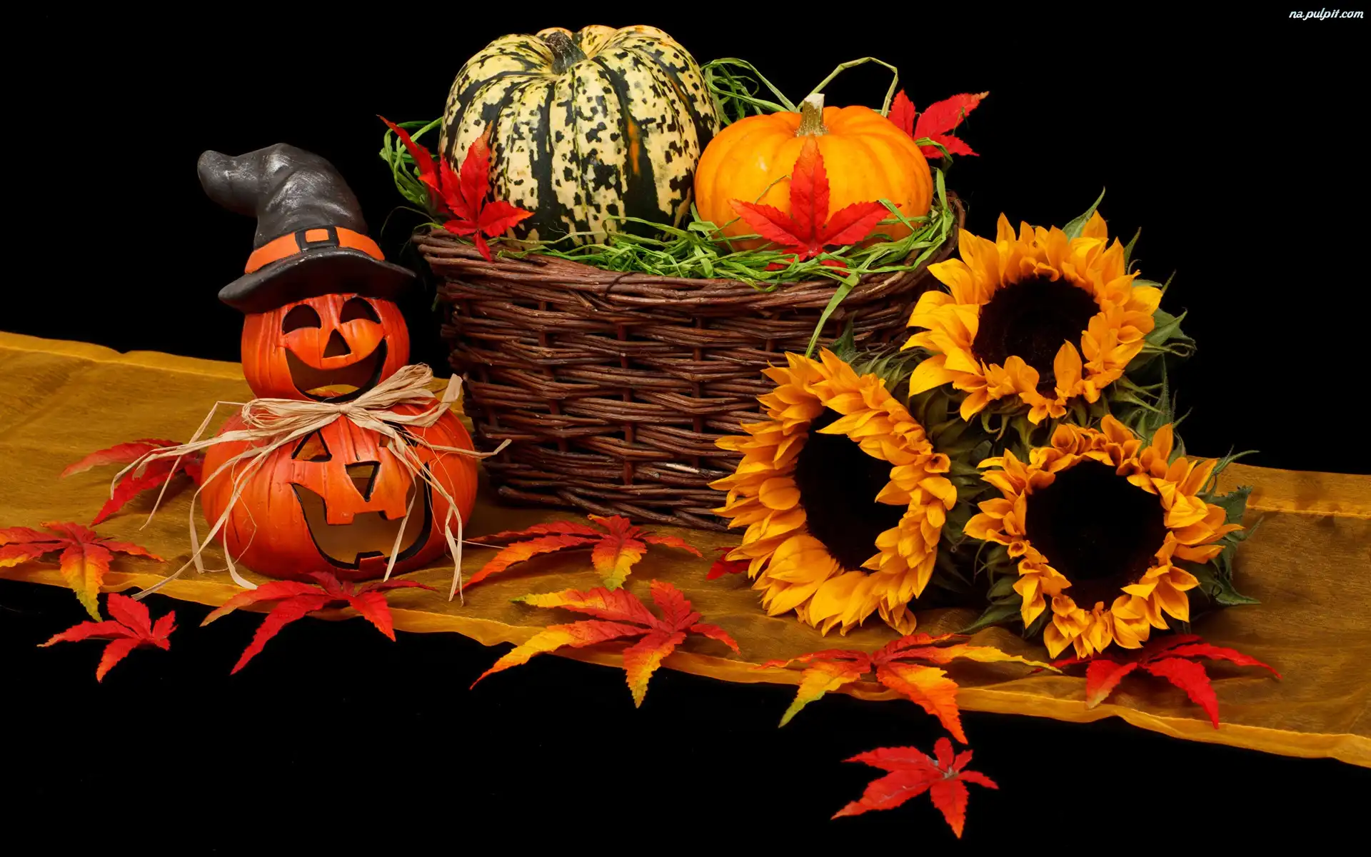 Halloween, Słoneczniki, Kosz, Dynie Na Pulpit