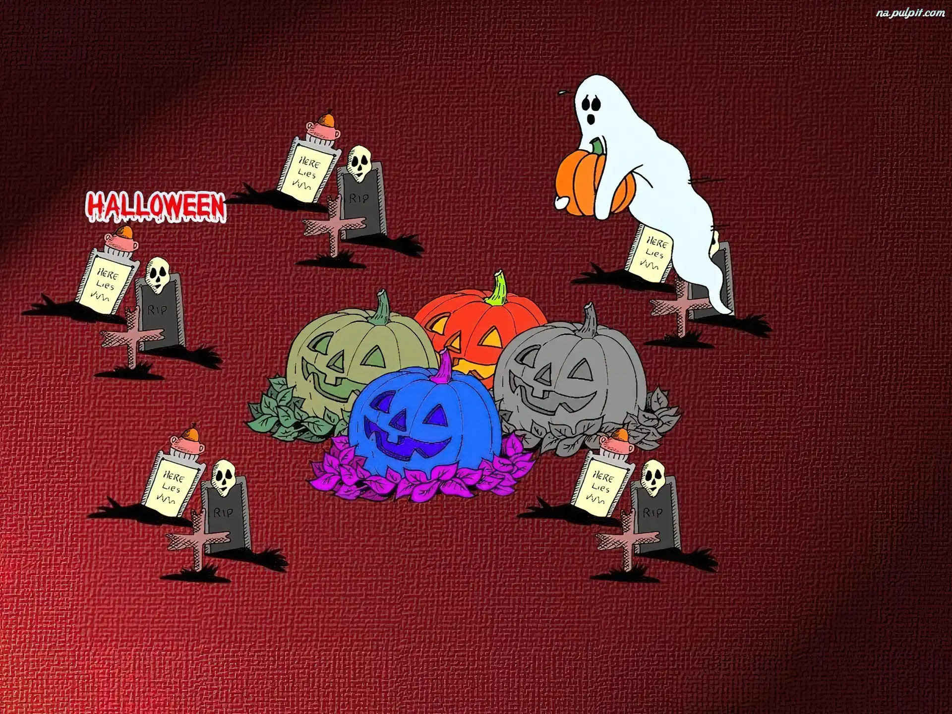 Halloween, dynie na cmentarzu