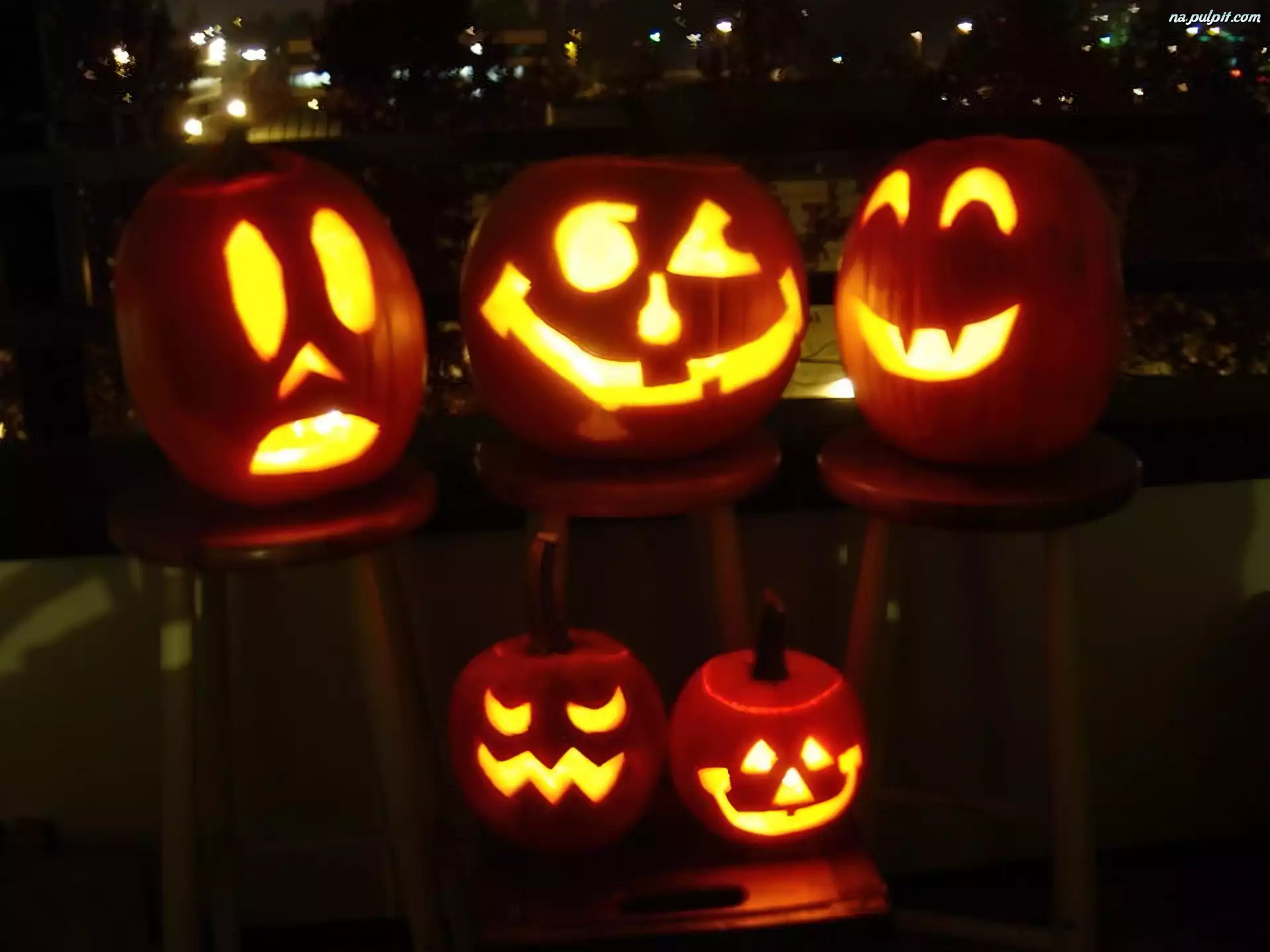 Halloween, dynie na krzesłach Na Pulpit
