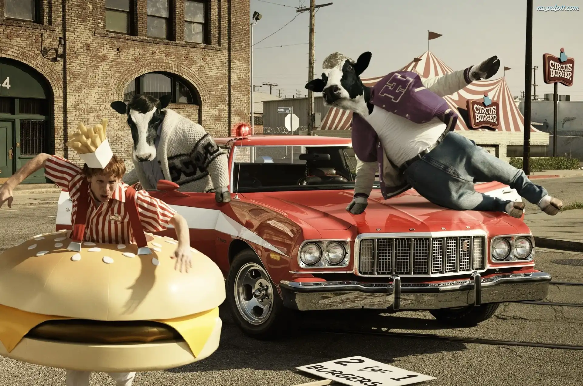 Hamburger, Ubrane, Samochód, Krowy Na Pulpit