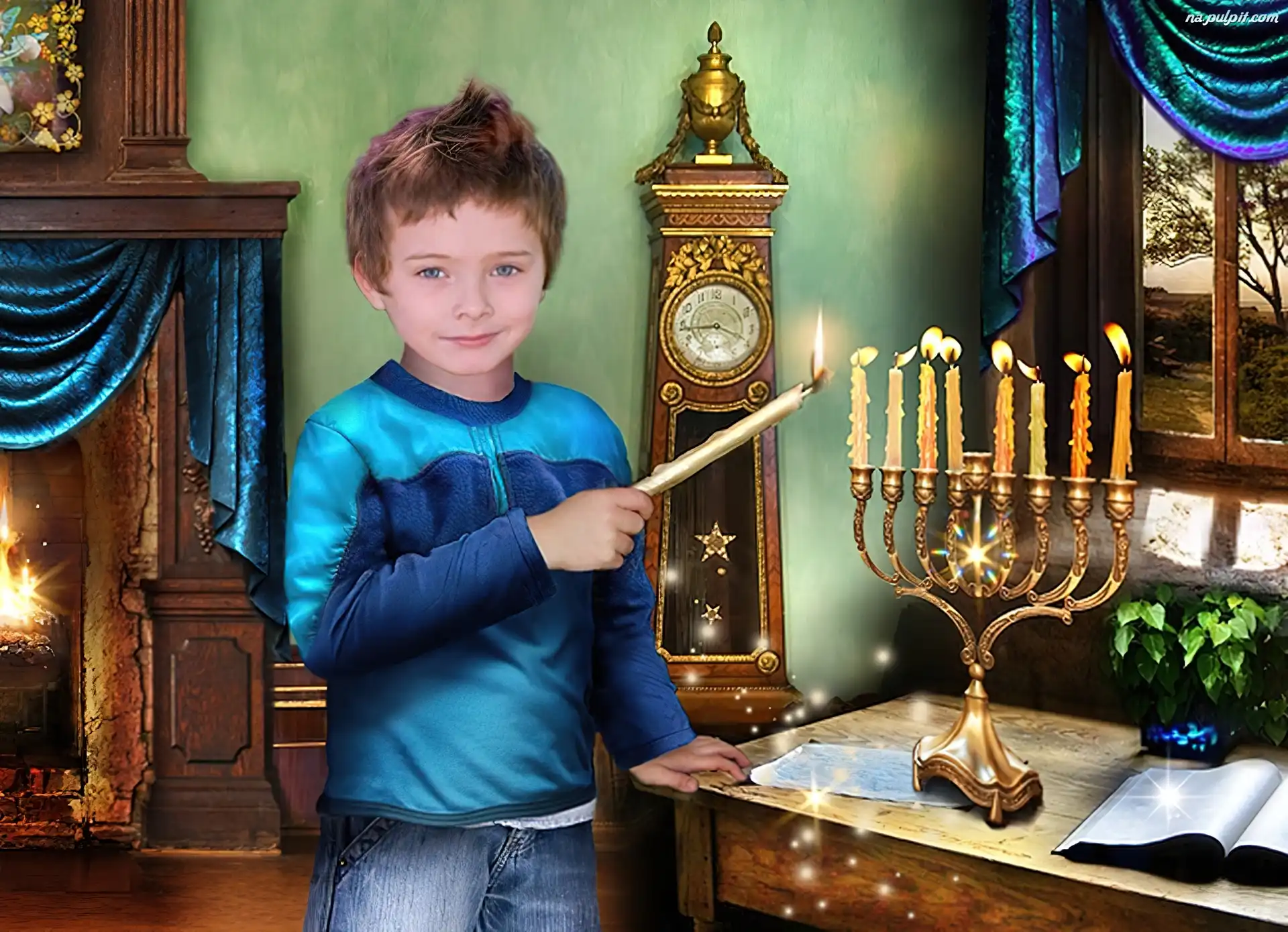 Hannukah, Świecznik, Chłopiec, Święto Na Pulpit
