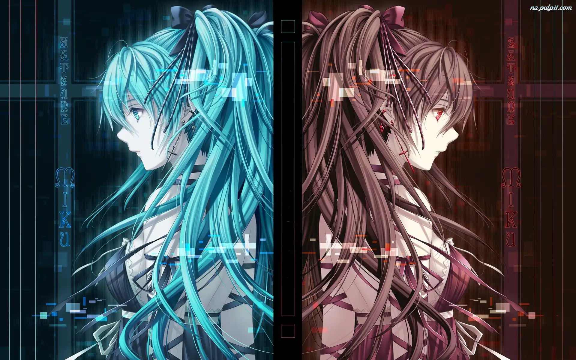 Hatsune Miku, Różowo, Niebieska Na Pulpit