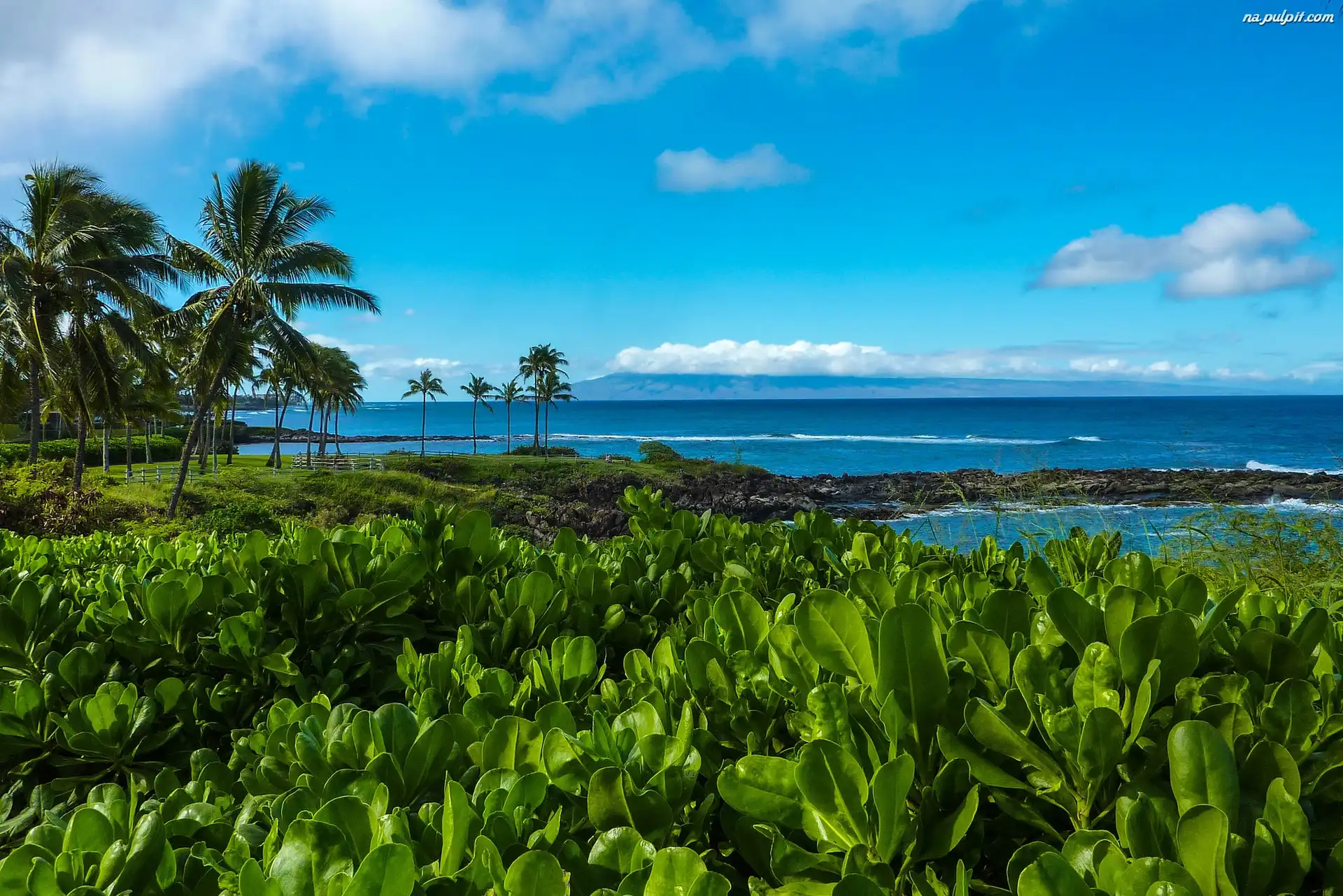 Hawaje, Plaża, Morze, Palmy Na Pulpit