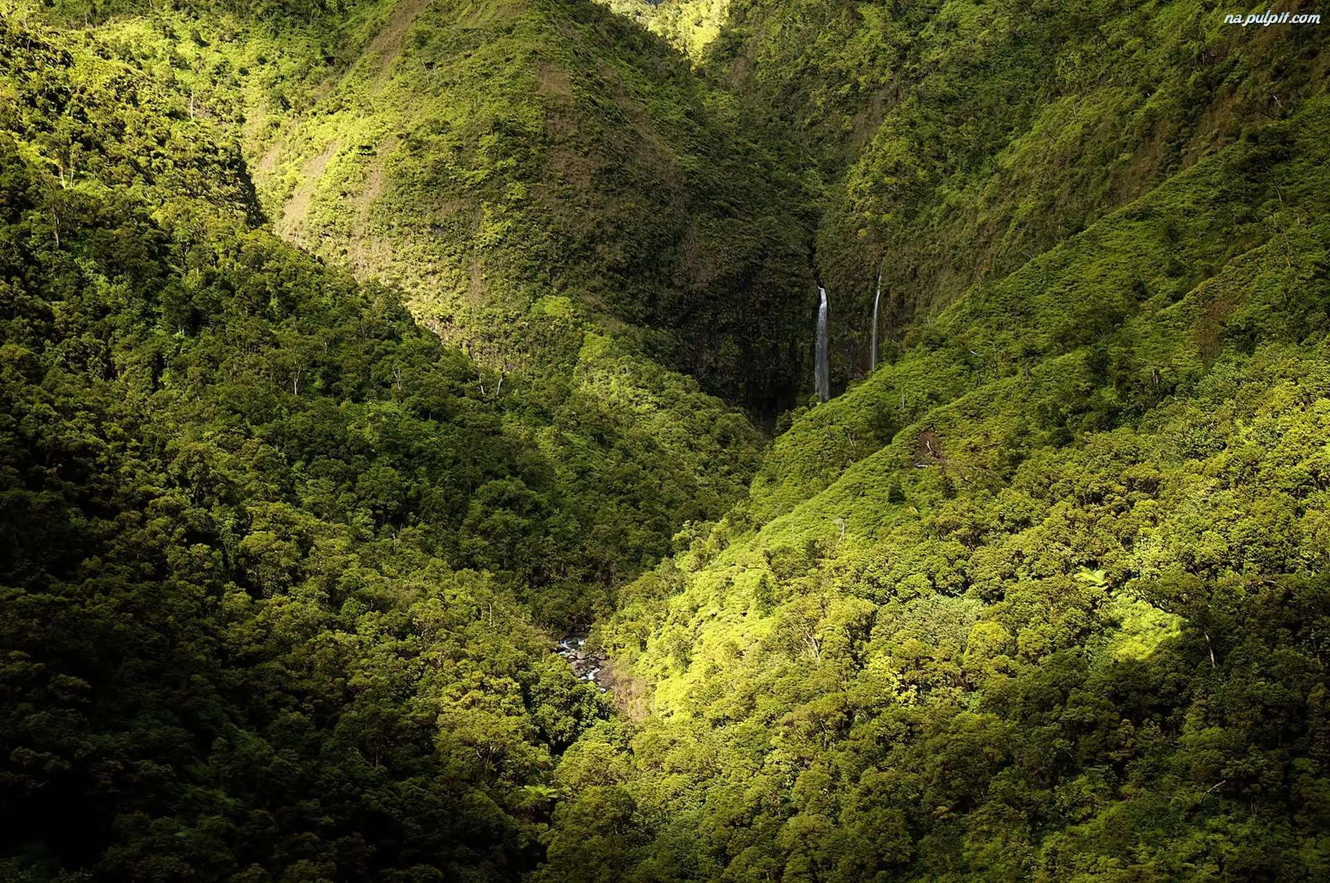 Hawaje, Las, Góry, Wodospad, Kauai Na Pulpit