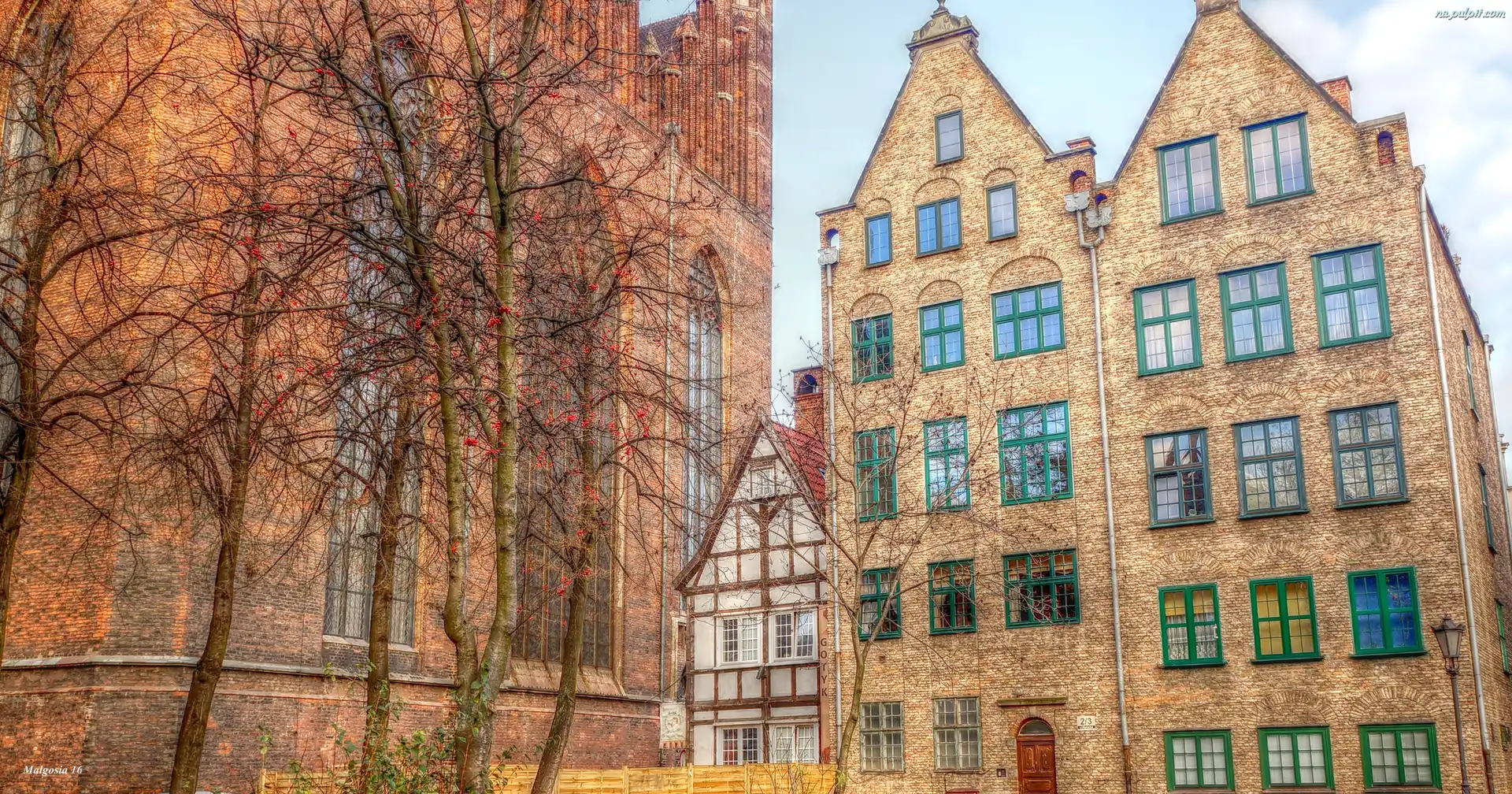 HDR, Kamieniczki, Kościół, Gdańsk, Drzewa