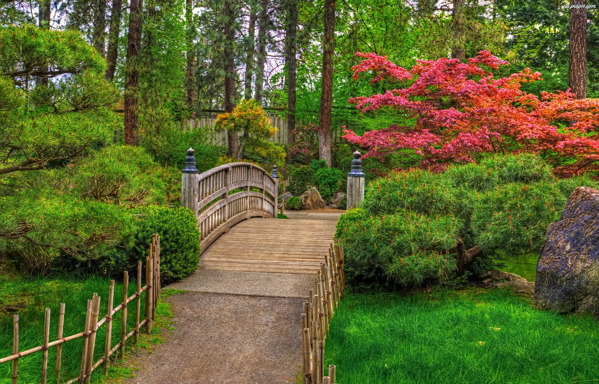 HDR, Krzewy, Ogród, Mostek, Drzewa Na Pulpit