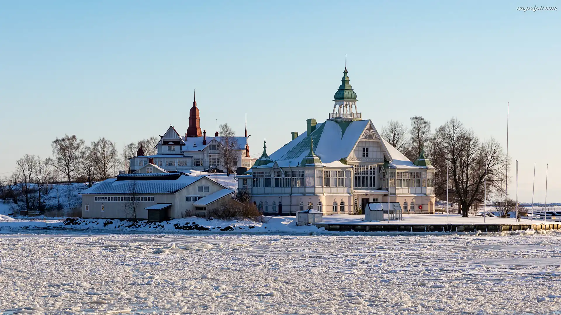Drzewa, Helsinki, Śnieg, Restauracja, Finlandia, Wyspa Valkosaari, Zima Na Pulpit
