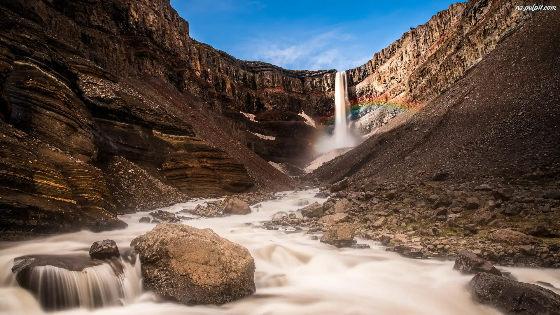 Hengifoss, Hengifossa River, Islandia, Skały, Wodospad, Rzeka Na Pulpit