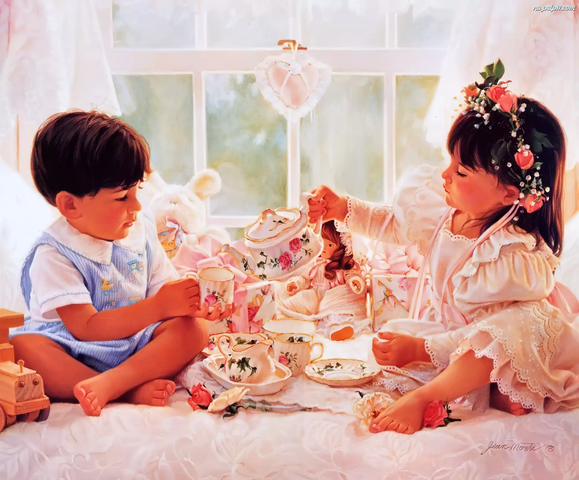 Herbata, Dzieci, Reprodukcja, Obraz, Zabawa