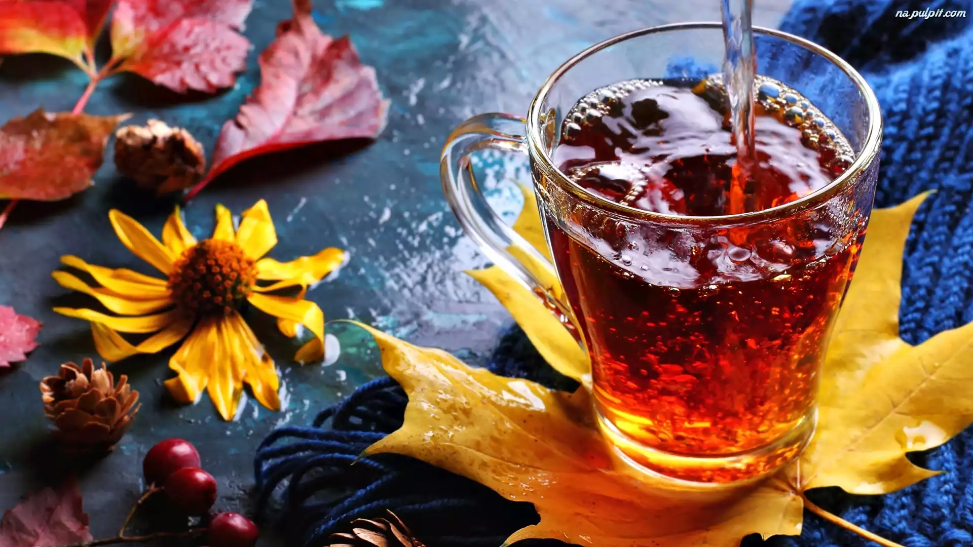 Herbata, Liście, Kwiaty, Napój, Szklanka, Jesienne Na Pulpit