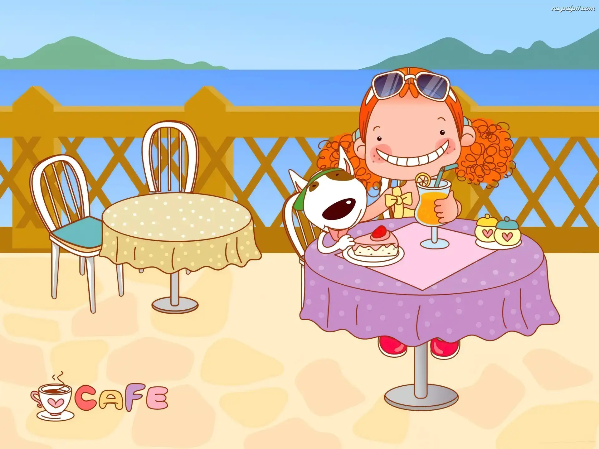Herbatka, Pies, Dziecko, Kawiarnia Na Pulpit