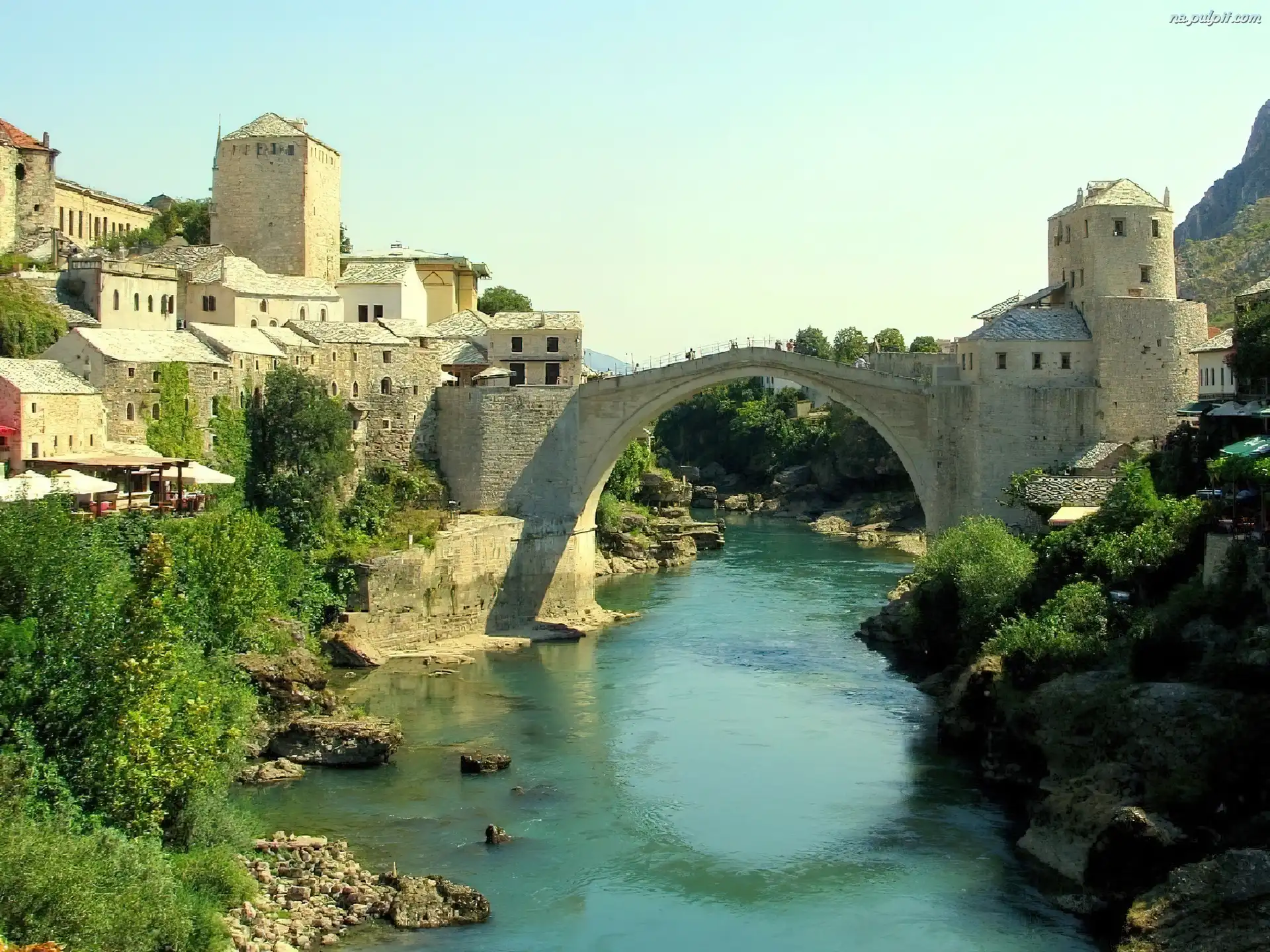Hercegowina, Most, Domy, Rzeka, Mostar Na Pulpit