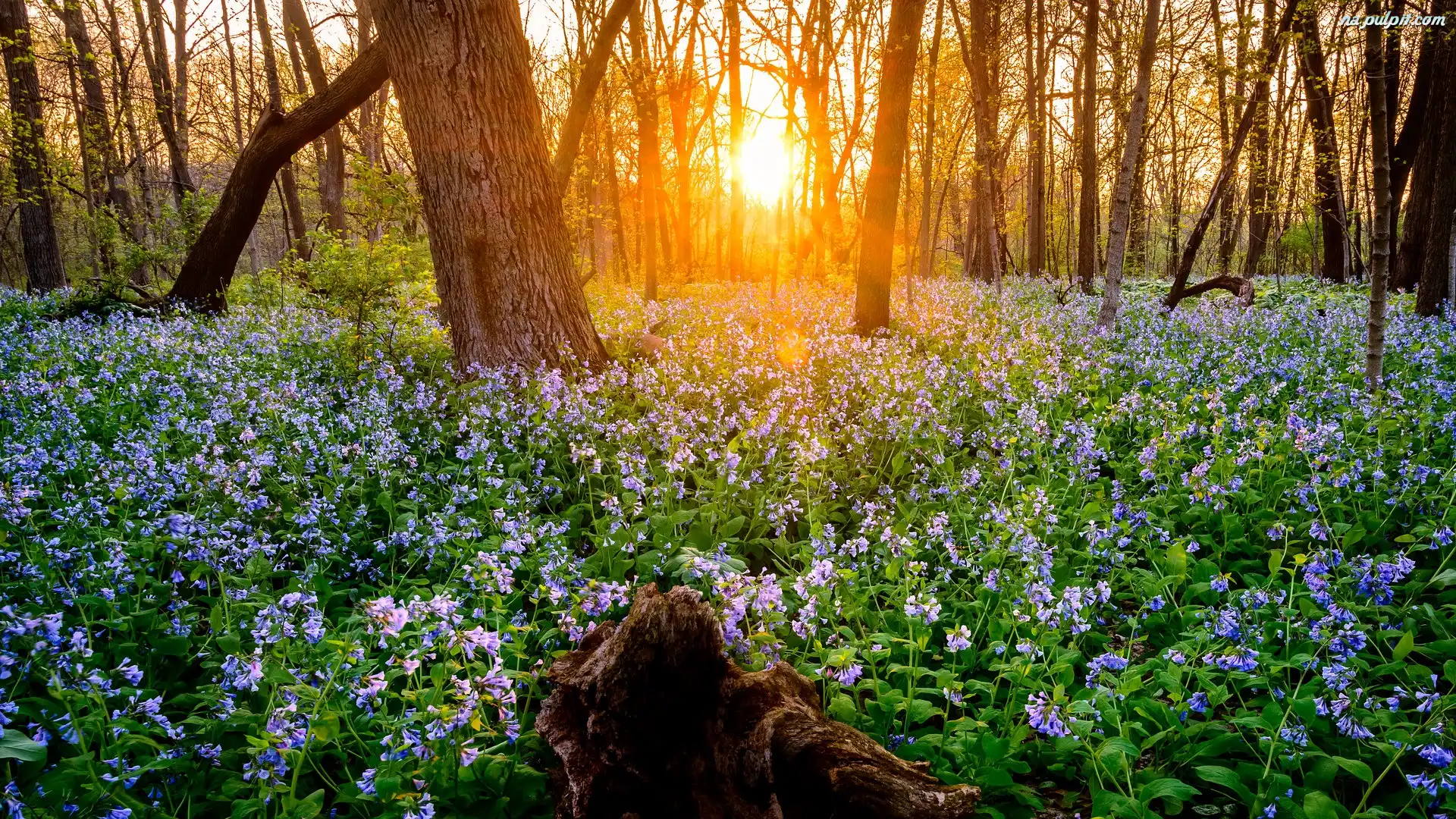 Słońce, Las, Kwiaty, Hiacyntowce, Niebieskie, Wiosna Na Pulpit