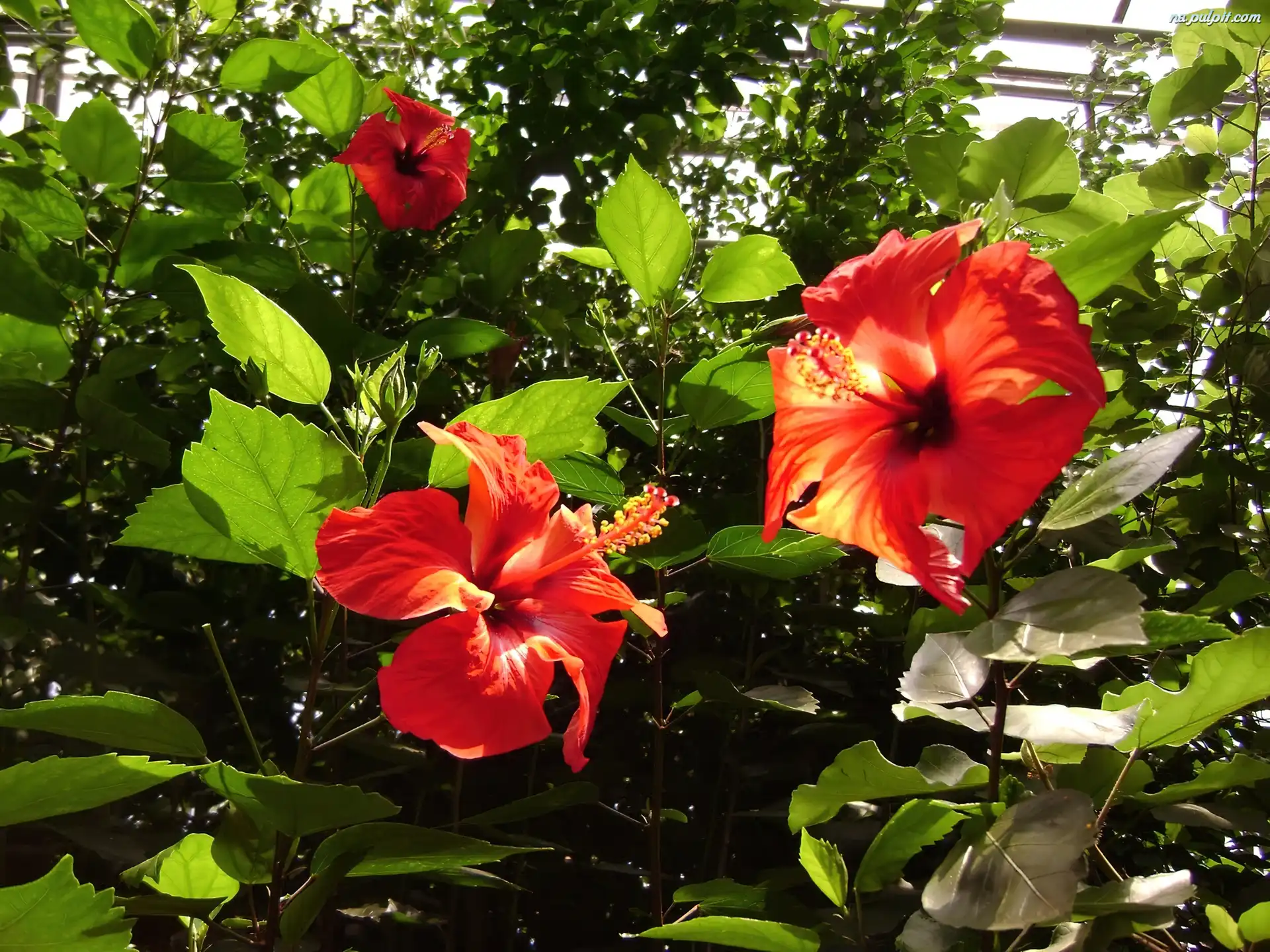 Hibiskus, Czerwone, Piękne, Kwiaty Na Pulpit