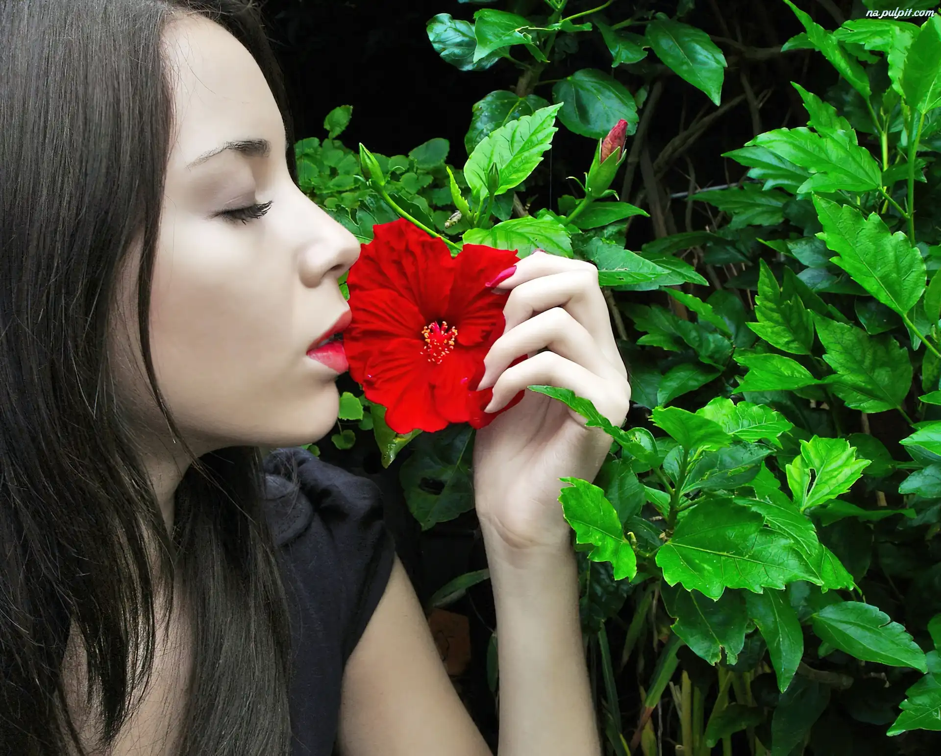 Hibiskusa, Czerwony, Profil, Dziewczyna, Kwiat Na Pulpit
