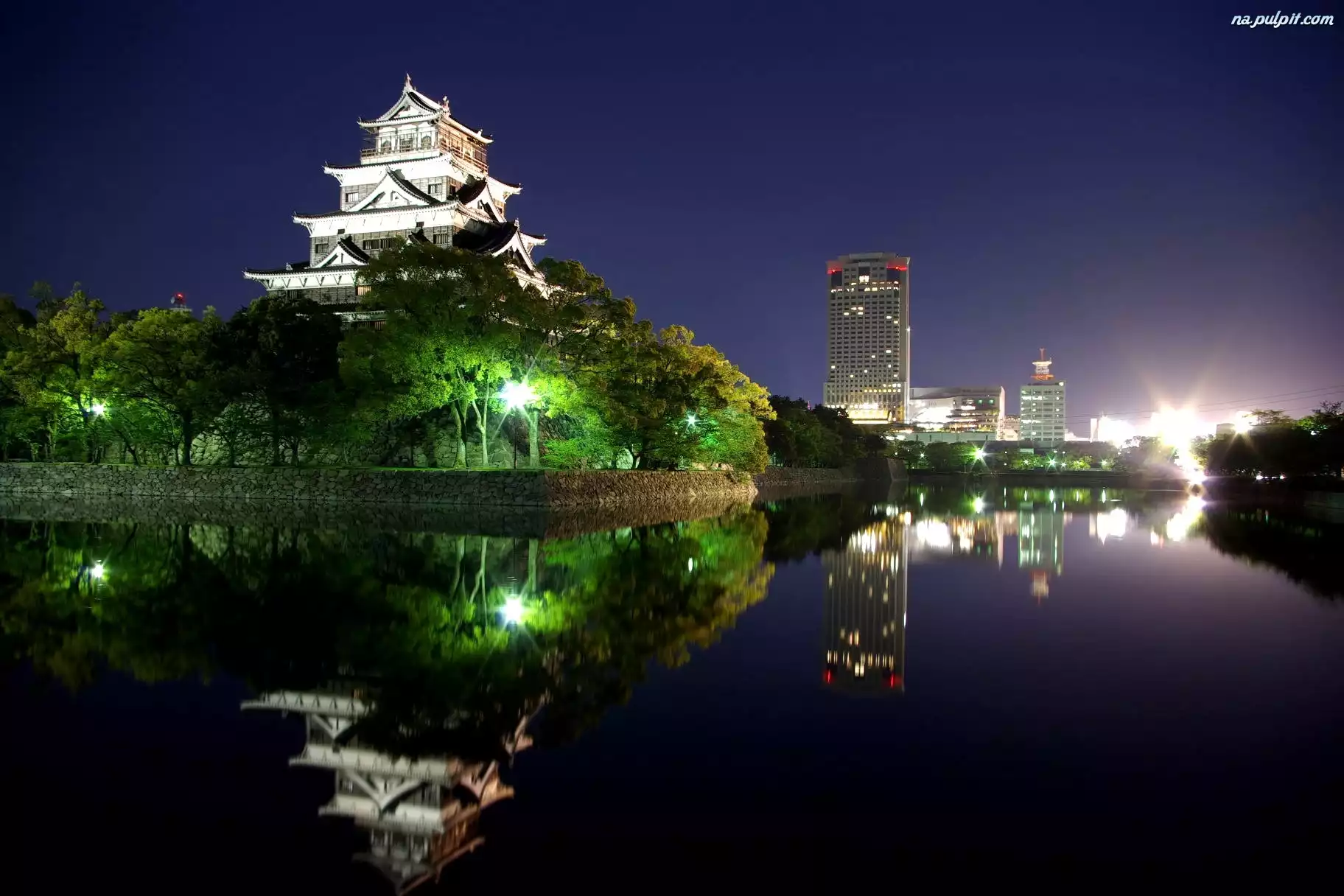 Hiroszima, Woda, Hotel, Drzewa Na Pulpit