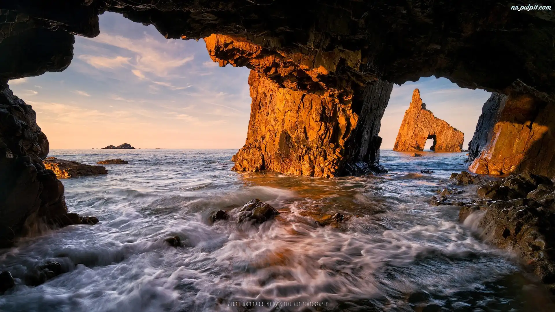 Hiszpania, Skały, Morze, Playa de Campiecho Na Pulpit