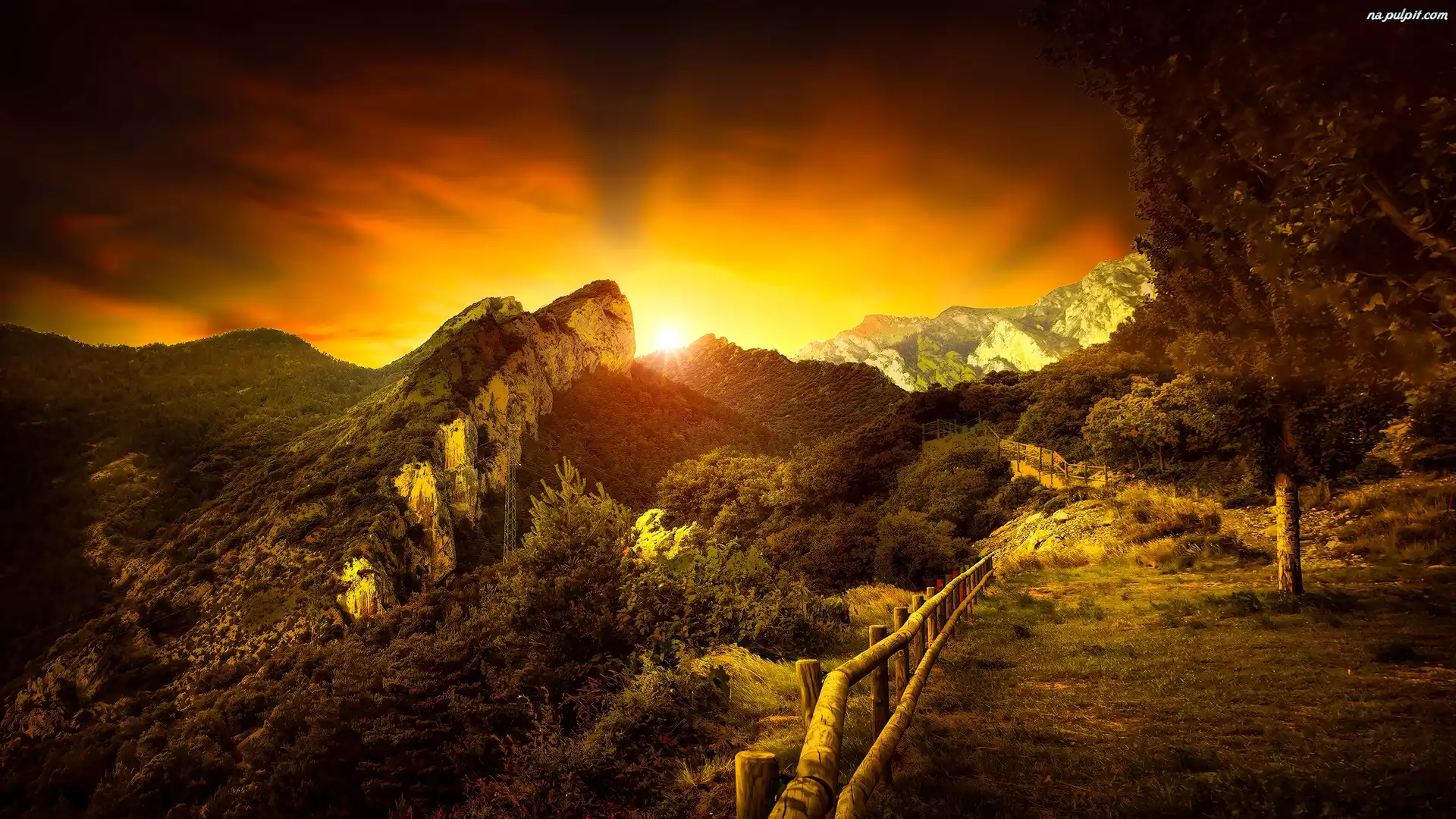 Hiszpania, Zachód Słońca, Góry, Krajobraz Na Pulpit