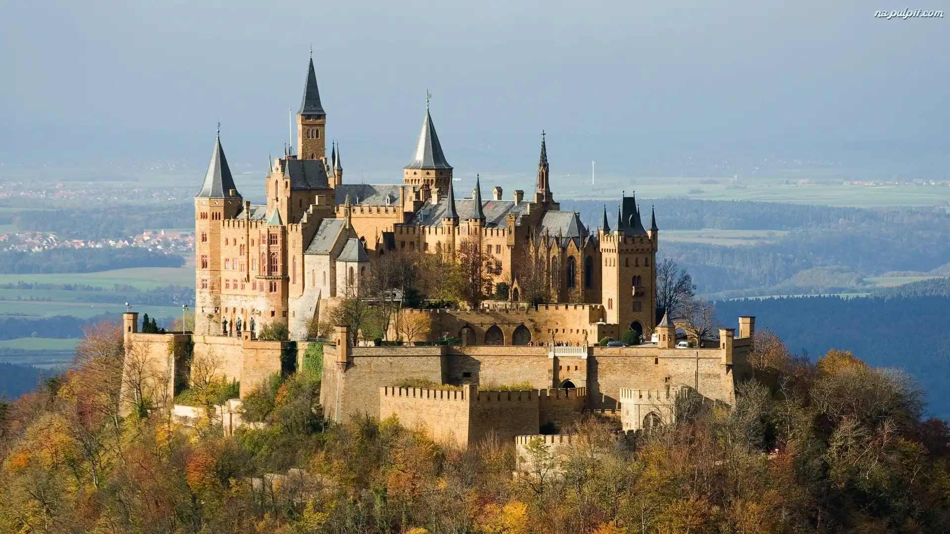 Hohenzollernów, Wieże, Drzewa, Stuttgart, Zamek, Niemcy Na Pulpit