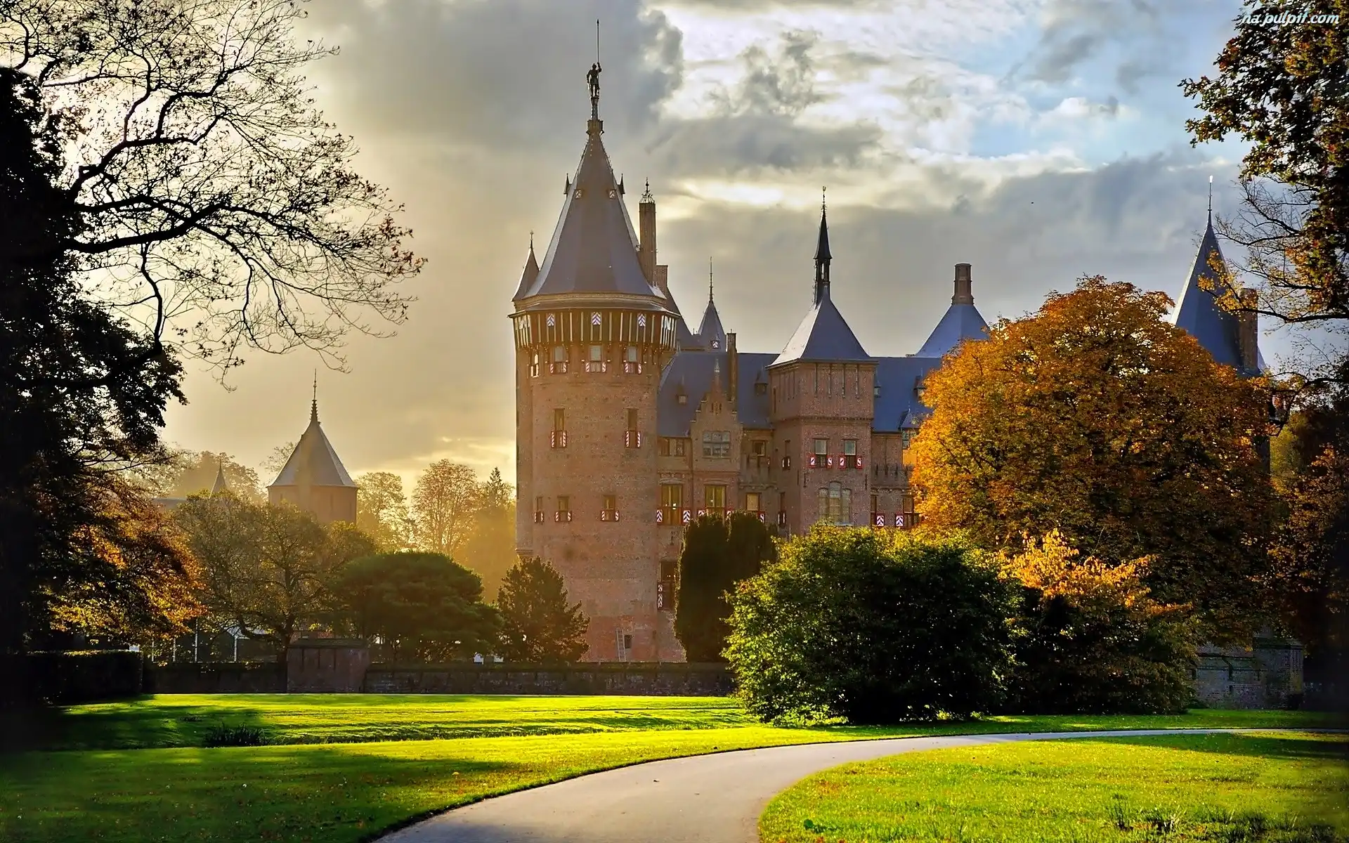 Park, Miasto Utrecht, De Haar Castle, Zamek de Haar, Holandia Na Pulpit