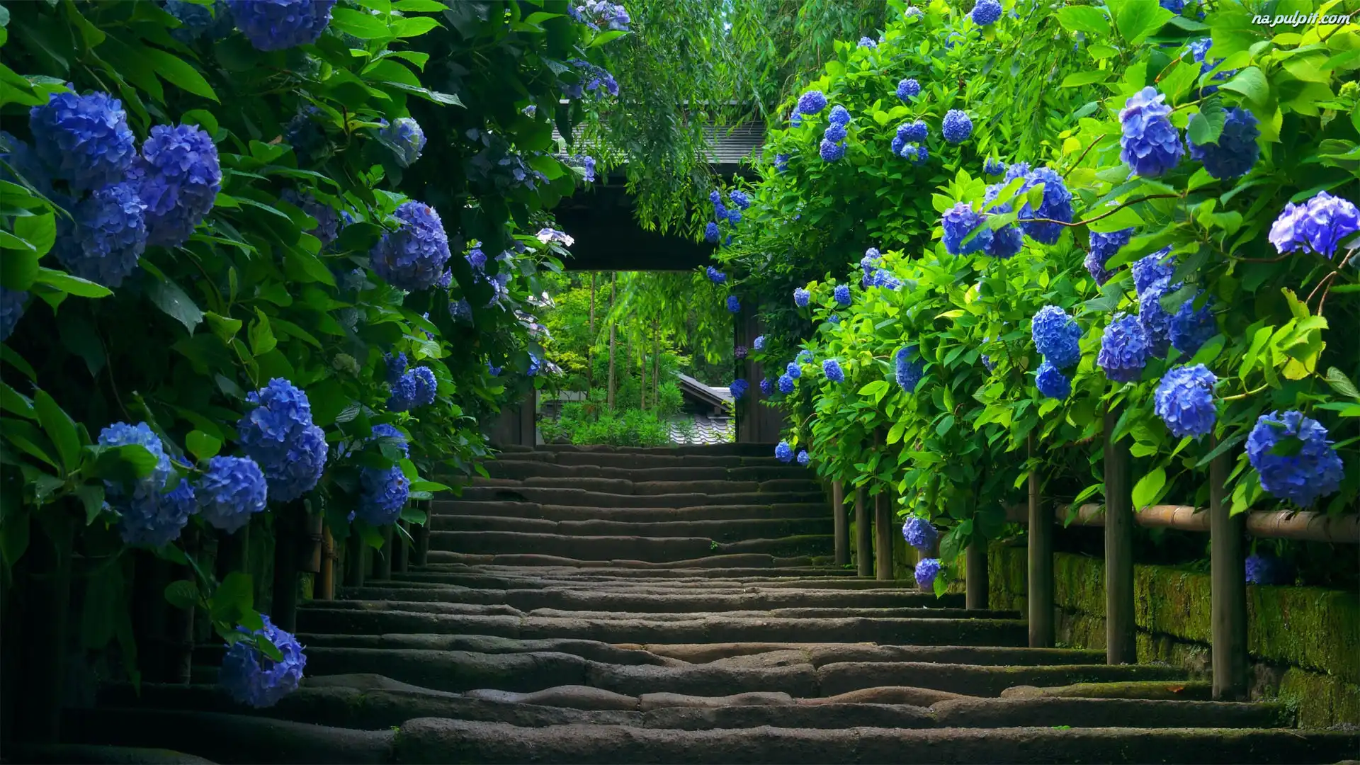 Hortensja, Schody, Stare, Niebieskie Na Pulpit