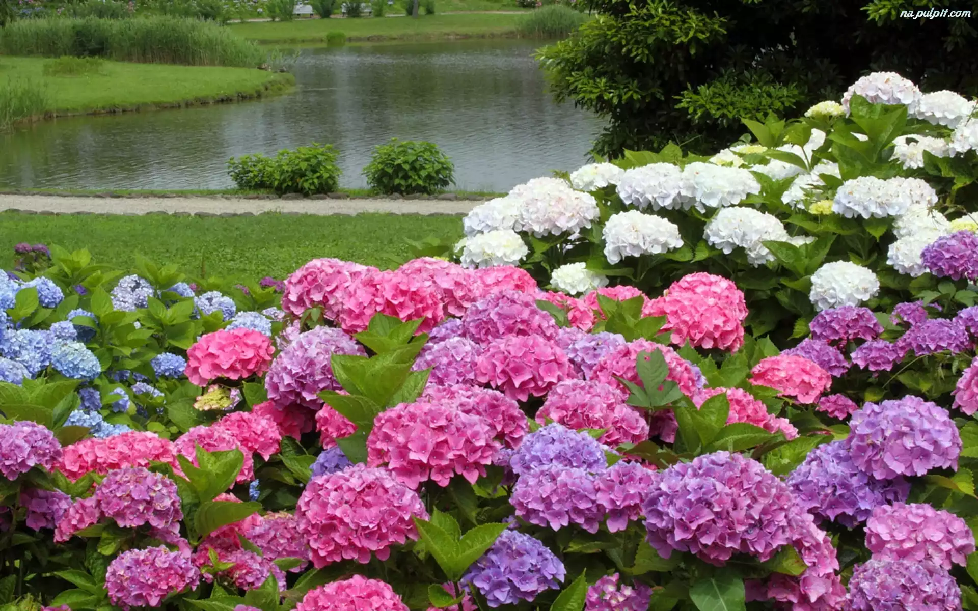 Hortensje, Staw, Park, Kolorowe Na Pulpit