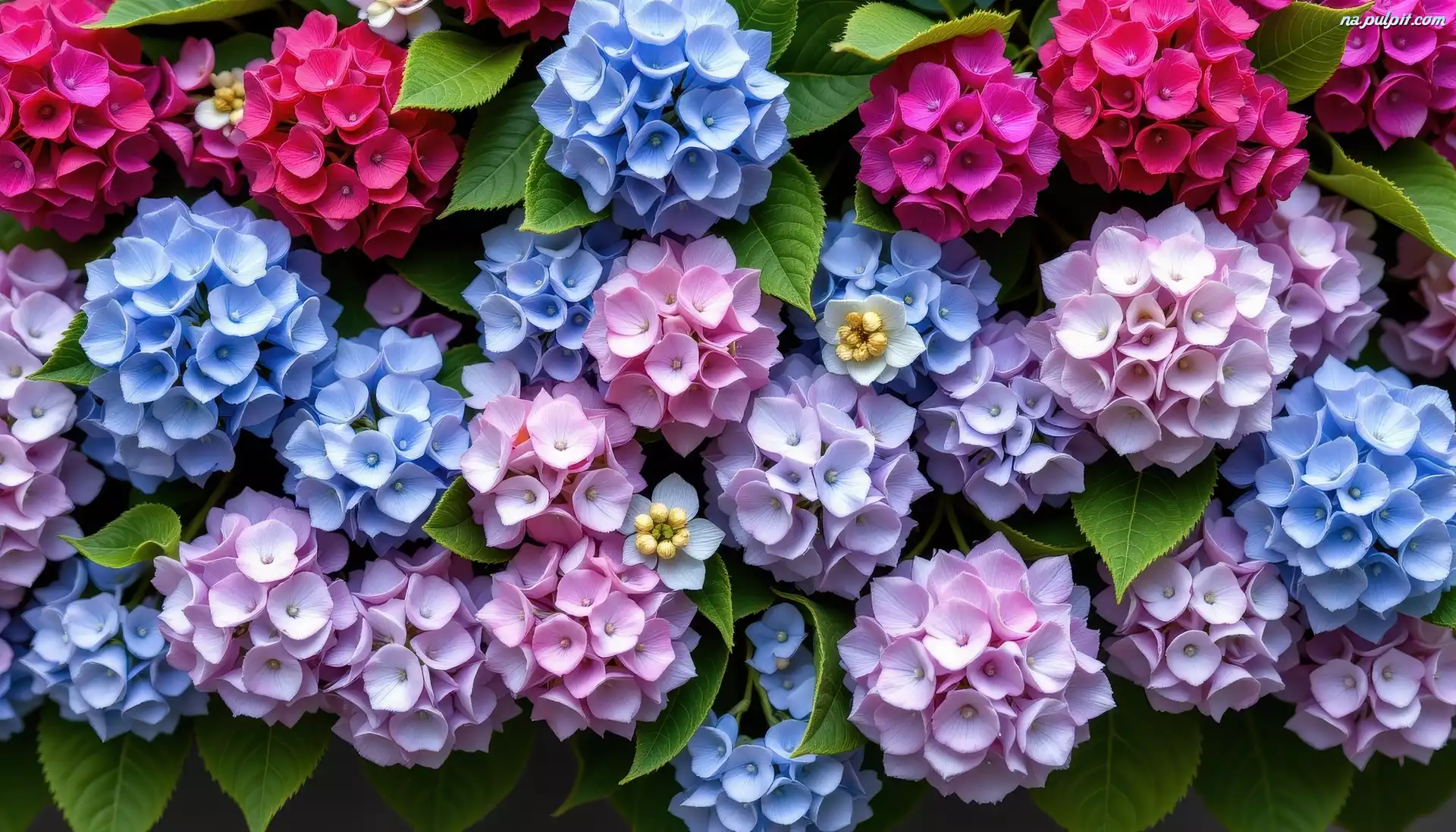 Różowe, Fioletowe, Niebieskie, Hortensje Na Pulpit