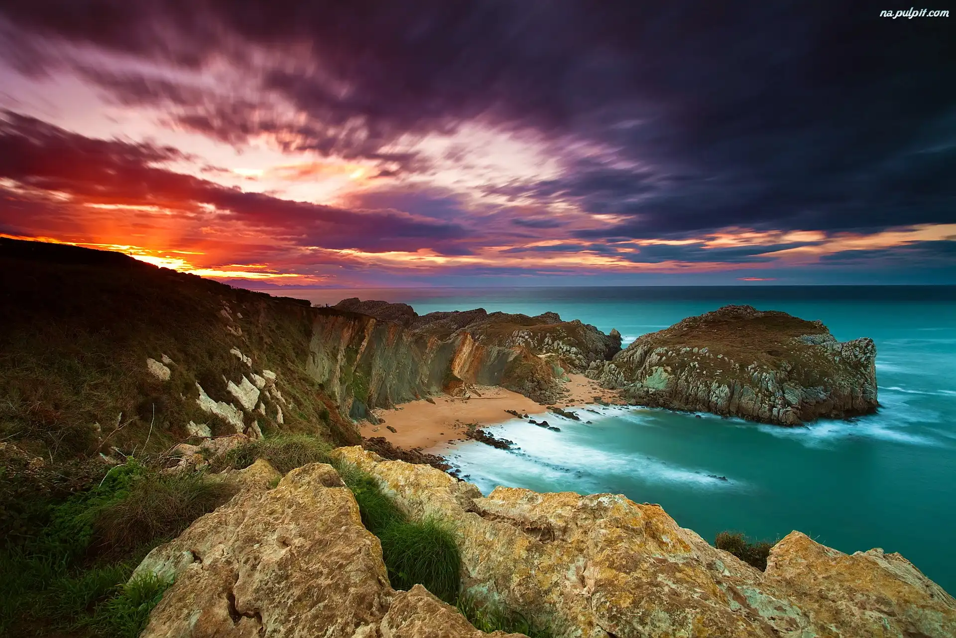Horyzont, Zachód, Morze, Skały Na Pulpit