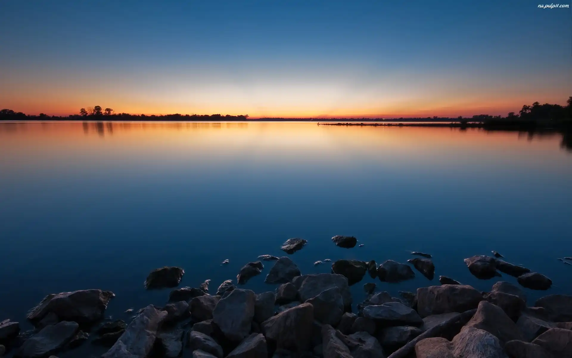 Horyzont, Słońca, Zachód, Jezioro Na Pulpit
