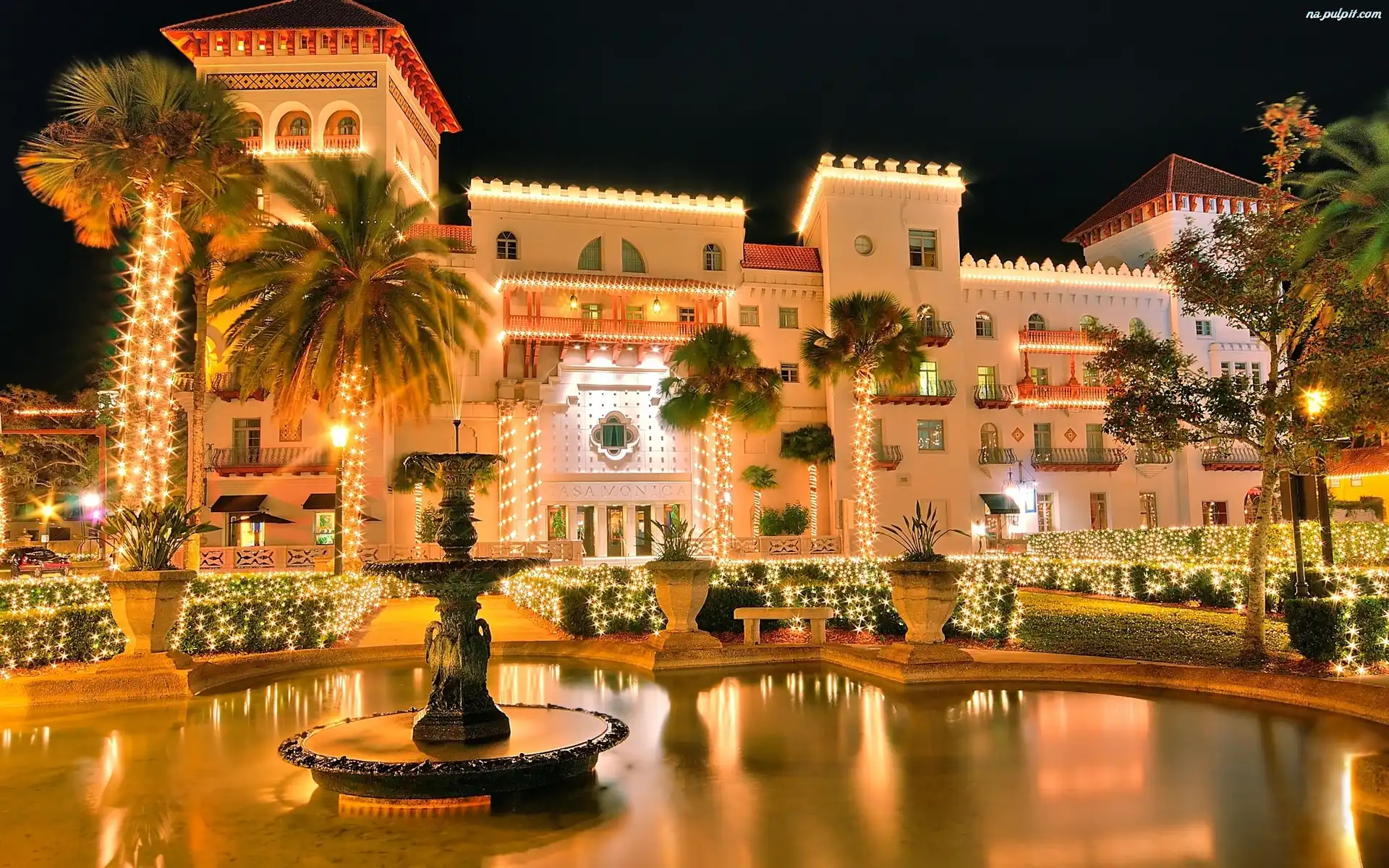Światełka, Fontanna, Hotel, Palmy Na Pulpit