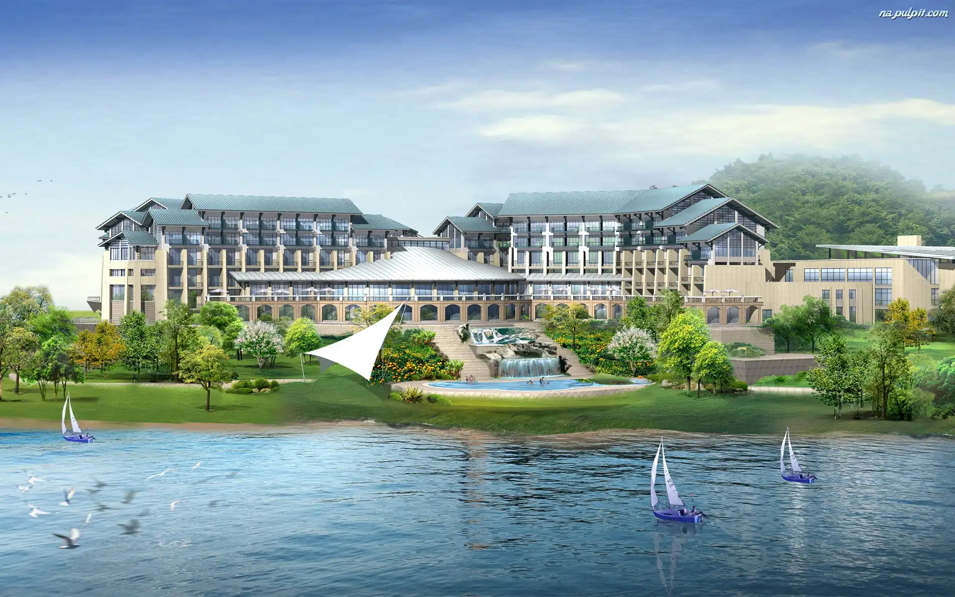 Gdańsk Brzeźno, Hotel Lival USA, Palm Beach, Palmy, Basen, Floryda Leżaki, Hotel, Basen Hotel, Hong, Kong Hotel, Baseny Morze, Widok, Salon, Biały, Na Patio, Morze, Drzewa Kawiarnia, Hotel, Hol Fontanna, Hotel, Światła Niebo, Budynek, Miasto, Parking Hotel, Pergola Odbicie, Komnata, Basen Stoliki, Hotel, Restauracja Nowoczesność, Hotel, Pokój