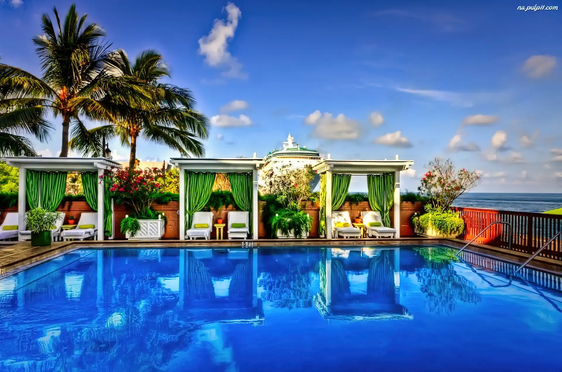 Gdańsk Brzeźno, Hotel Lival USA, Palm Beach, Palmy, Basen, Floryda Leżaki, Hotel, Basen Hotel, Hong, Kong Hotel, Baseny Morze, Widok, Salon, Biały, Na Patio, Morze, Drzewa Kawiarnia, Hotel, Hol Fontanna, Hotel, Światła Niebo, Budynek, Miasto, Parking Hotel, Pergola Odbicie, Komnata, Basen Stoliki, Hotel, Restauracja Nowoczesność, Hotel, Pokój